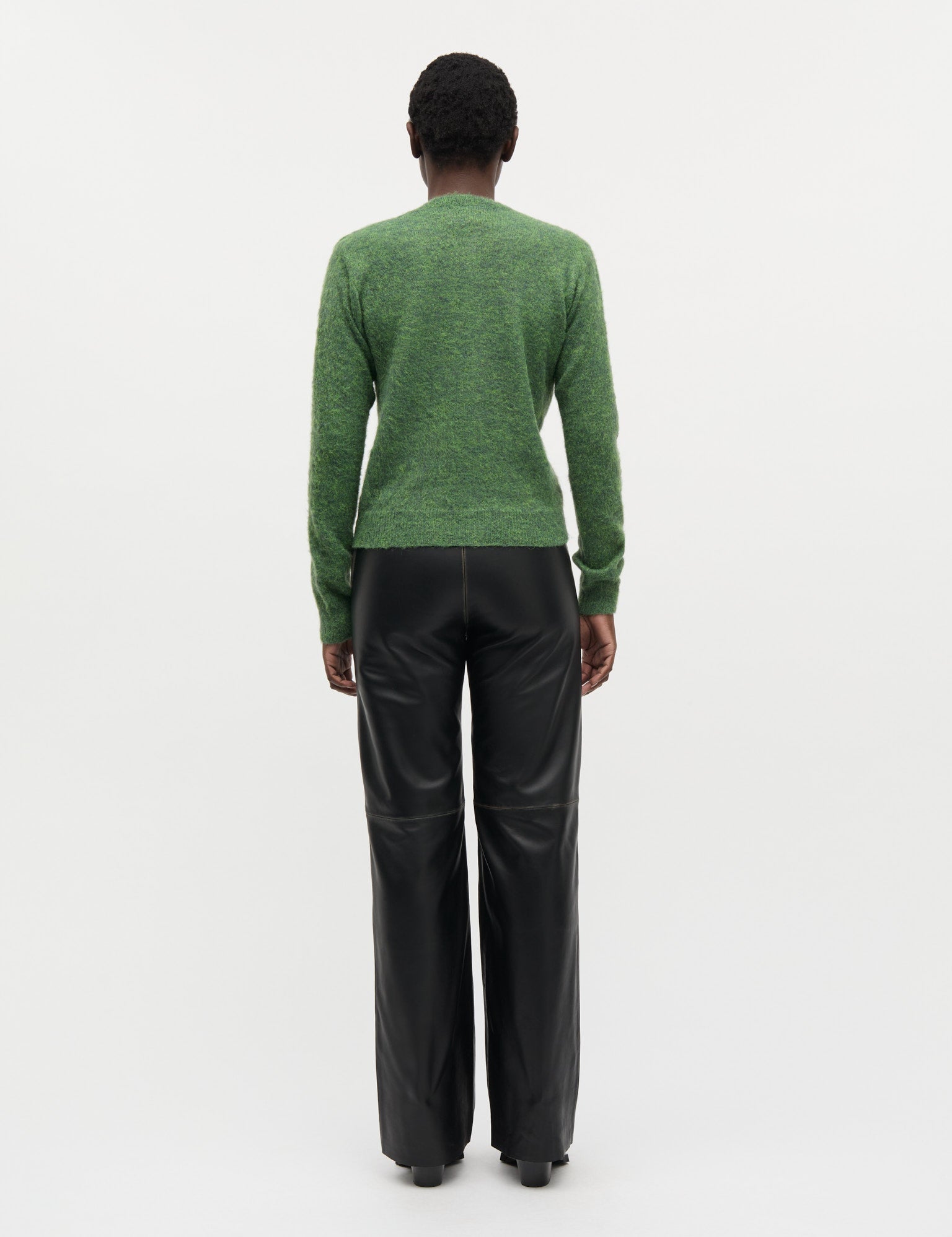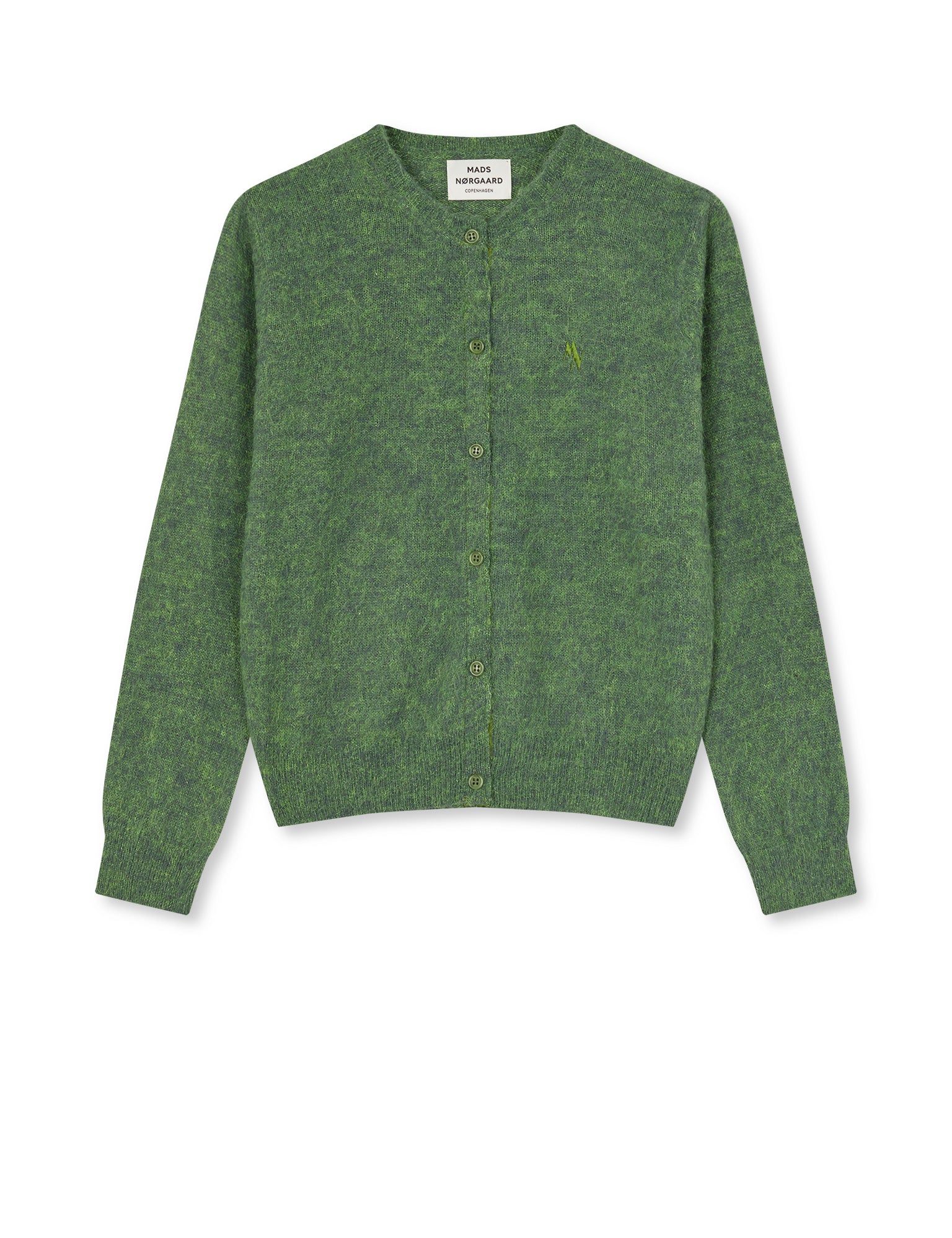 Soft and fluffy knitted cardigan with a round neck, small buttons, ribbed trim and embroidered mini logo.
