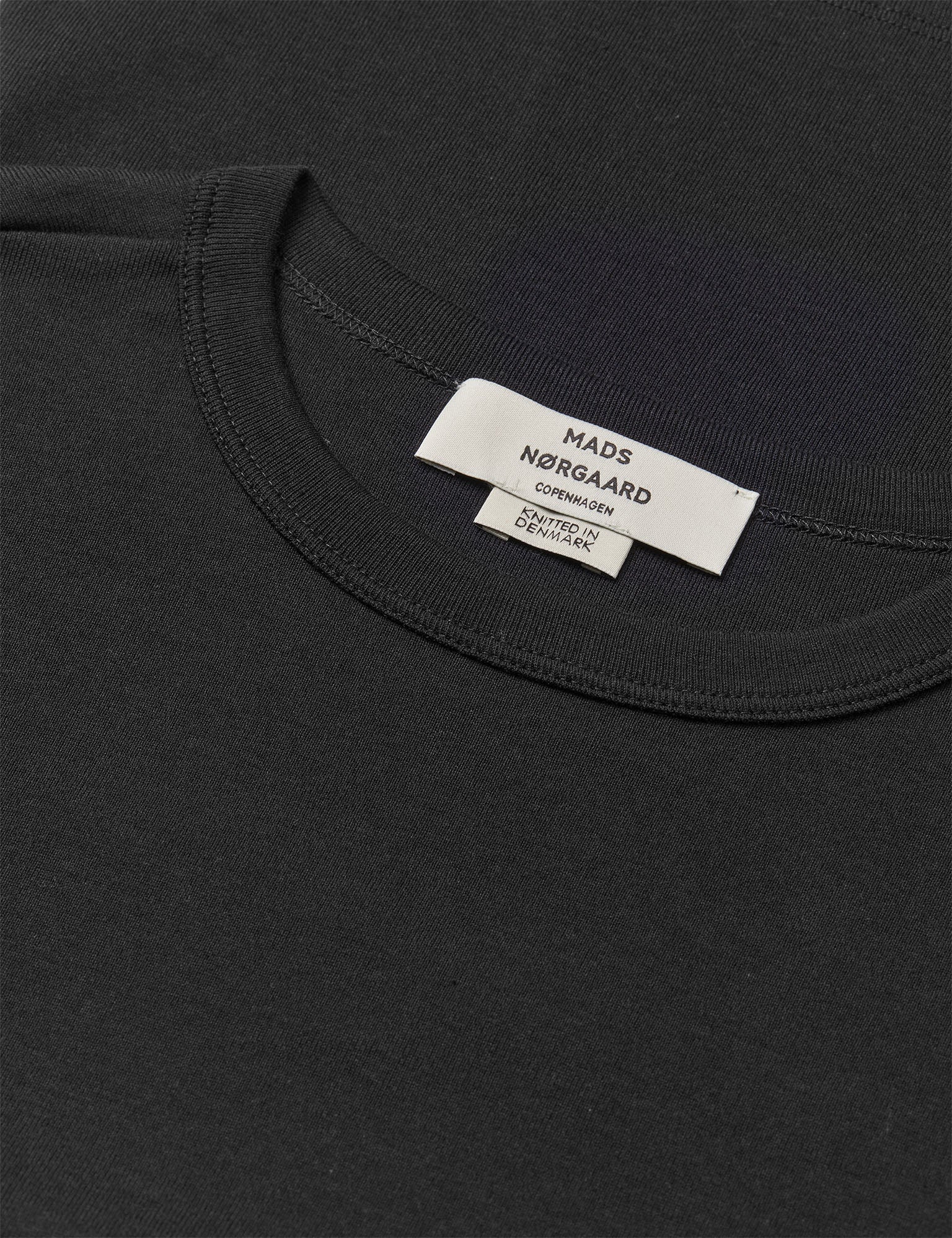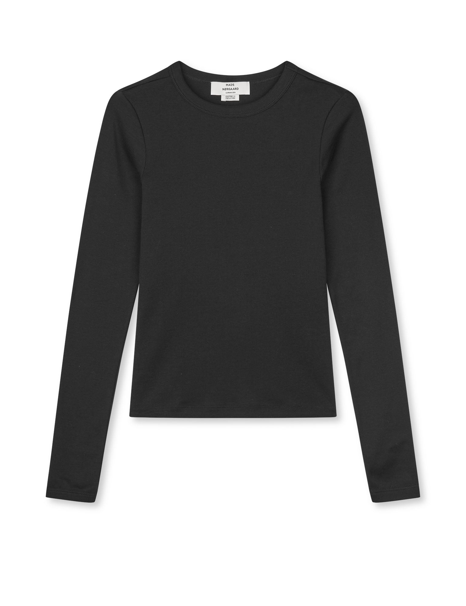 Close-fitting blouse with a round neckline, long sleeves and a smooth, elasticated fit. This carefully crafted t-shirt is designed to fit and feel just right. Made from high quality long-fiber cotton, it has a soft touch and keeps its shape wash after wash. The fabric is knitted by one of the few remaining family-owned suppliers – and a longtime Mads Nørgaard favorite – located in Denmark. Here, the knitting tradition is carefully upheld and proudly kept local, with every step of production closely overseen. The t-shirt design is classic, with a stylish twist in detail, color, or stripe.