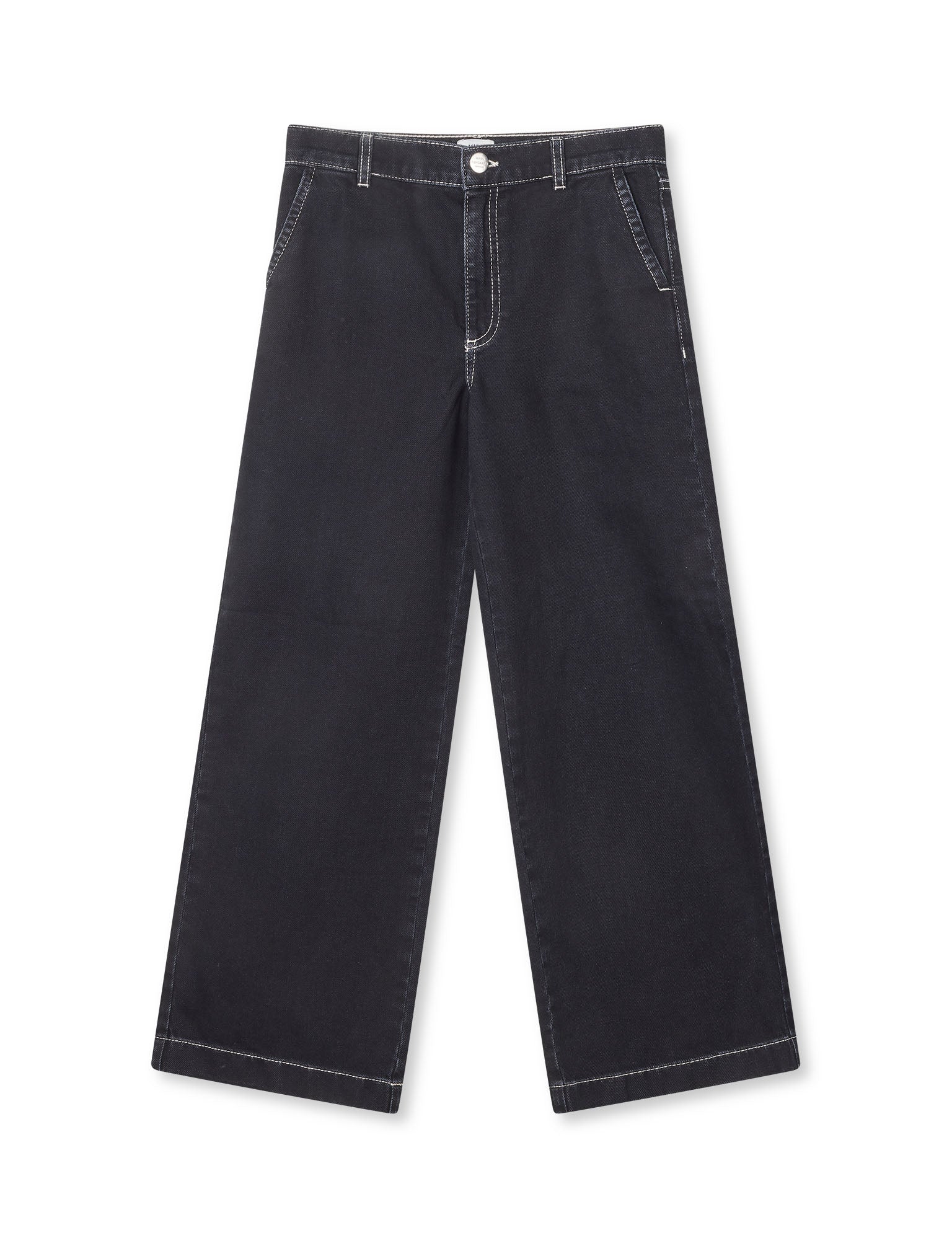 The Hildred Black Pilar are organic denim jeans with a medium-rise waist, slanted pockets, back pockets and straight, loose-fitting legs.