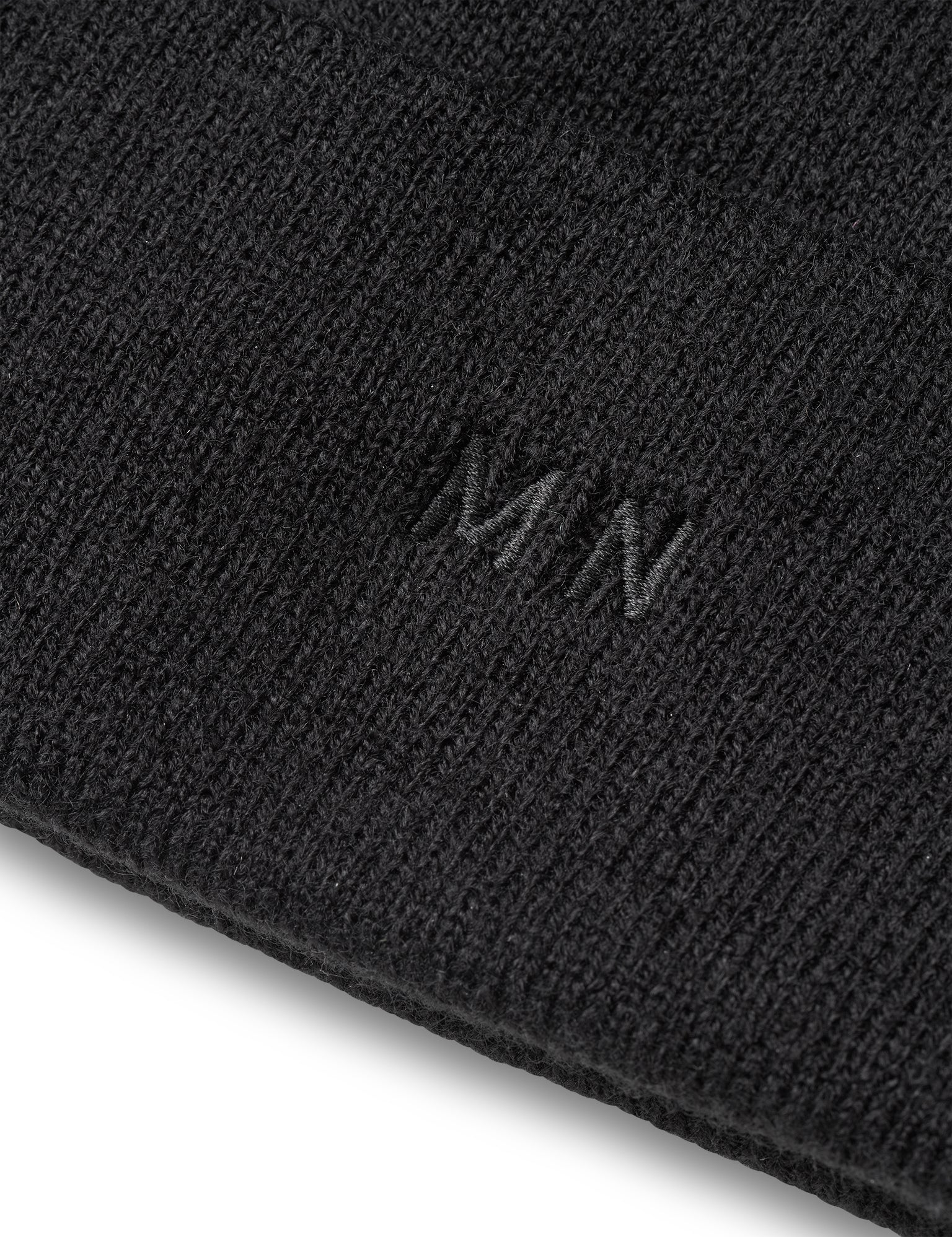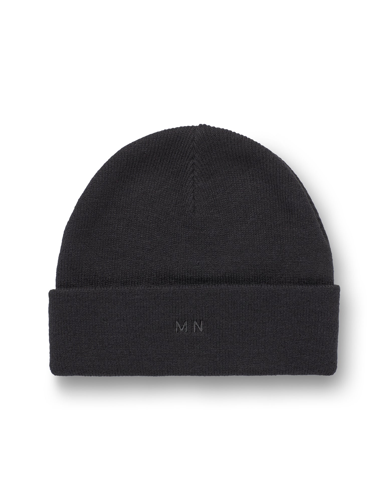 Smooth knitted beanie with a turn-up with small logo embroidered on it.