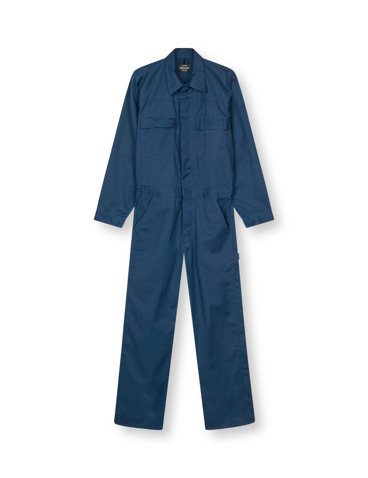 Kansas MN Twill Boilersuit is made from a strong and firmly woven twill. The suit has a zipper, chest pockets, side pockets and back pockets with a small orange logo. The fit is regular. The models wear size L. The suit is running small in size. We recommend going up a size.