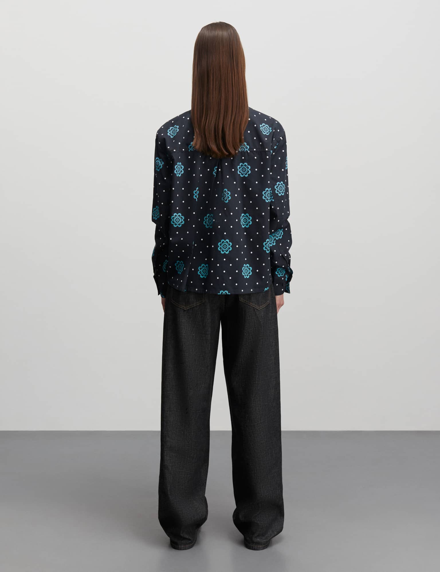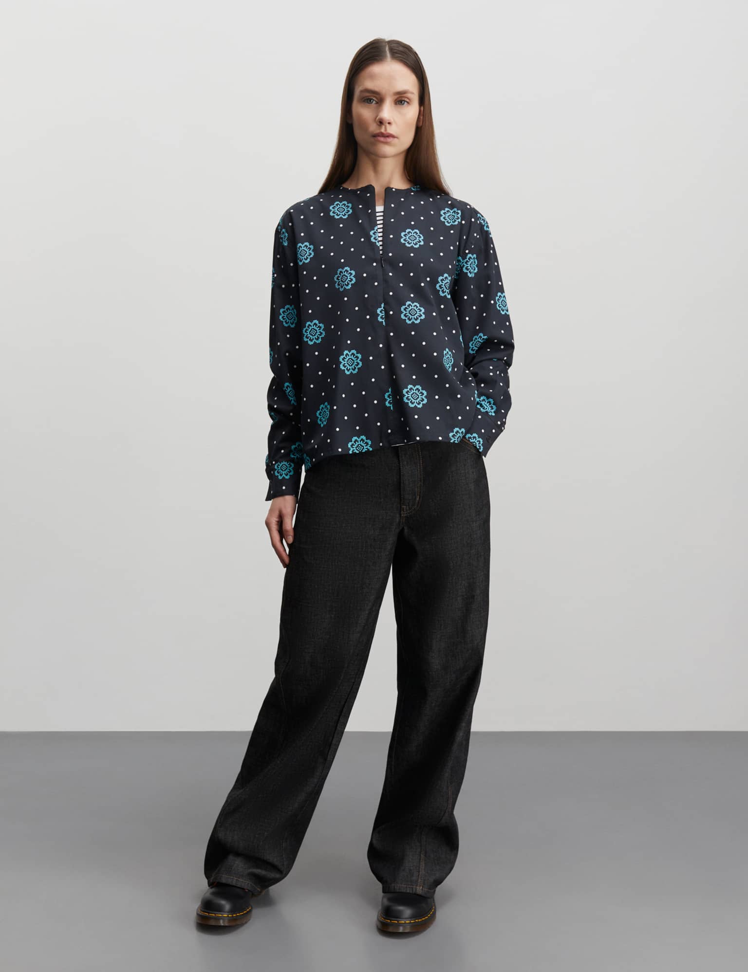 Leo Twill Frey is a printed shirt made in a soft cotton. The shirt has a front zipper and the fit is boxy.