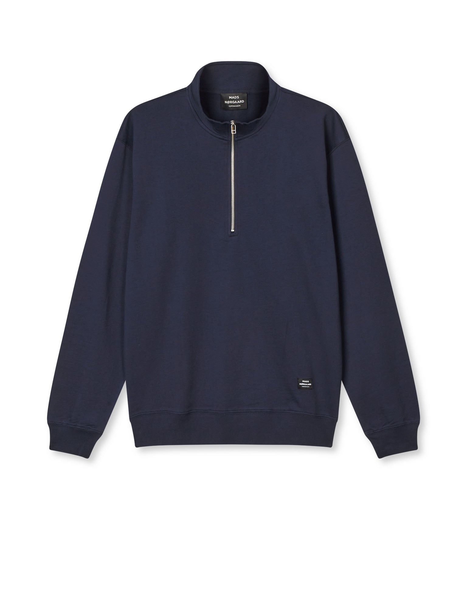 This sweatshirt is slightly boxy in fit, soft on the inside and half zip.