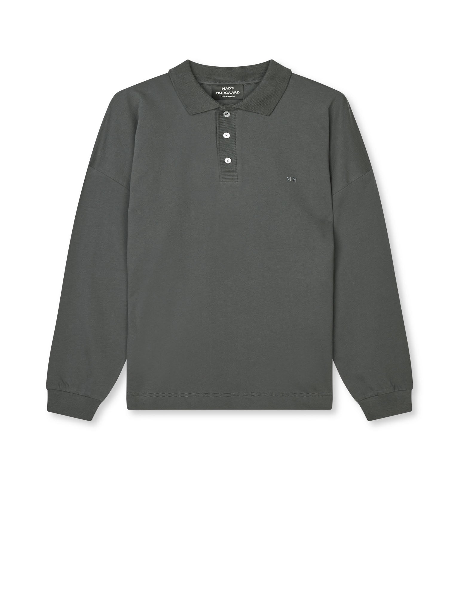 Light sweatshirt with dropped shoulders, polo collar, placket closure and small embroidered initial logo on the chest.