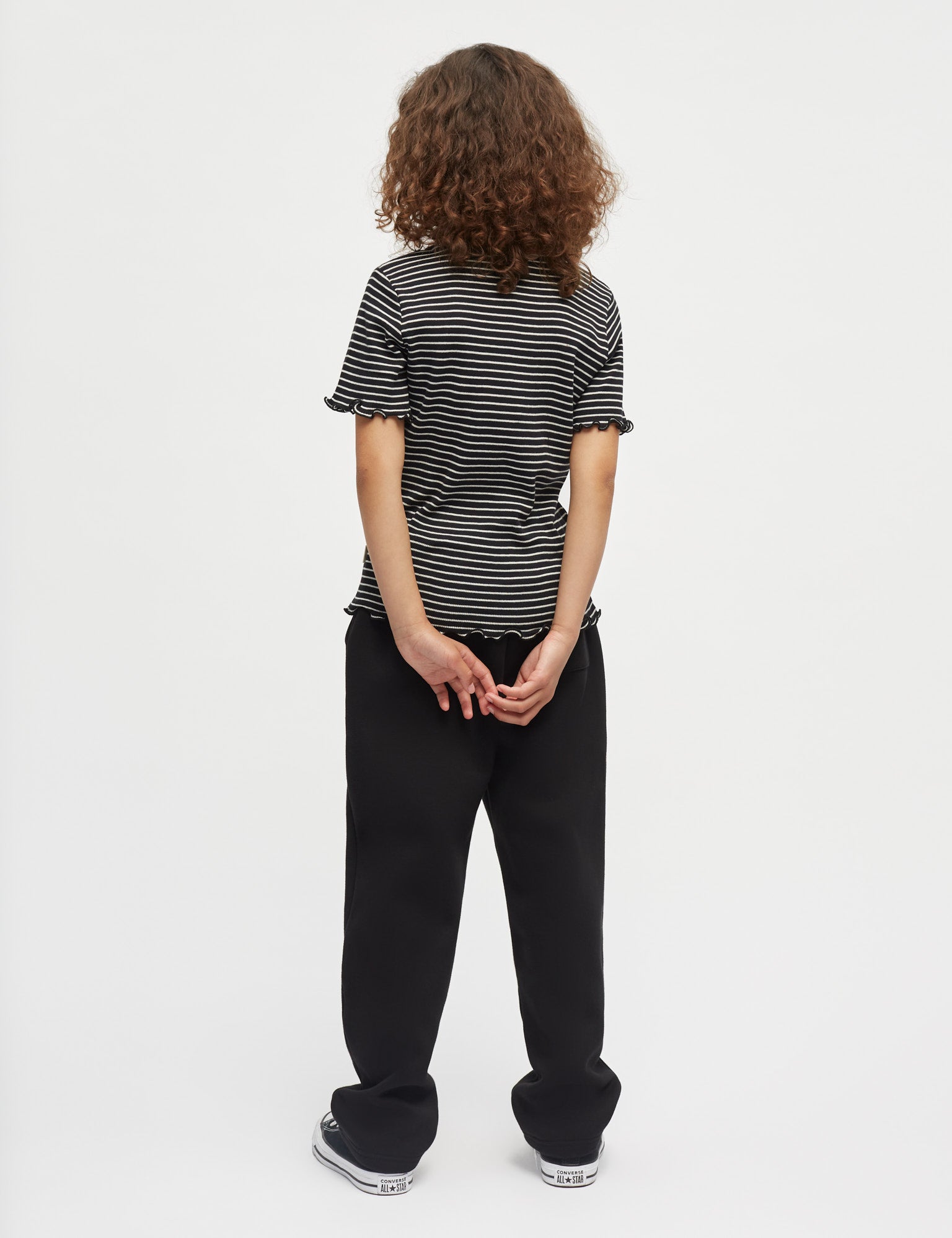 Soft sweatpants with side pockets, back pocket, elastic waistband with drawstring and loose legs.