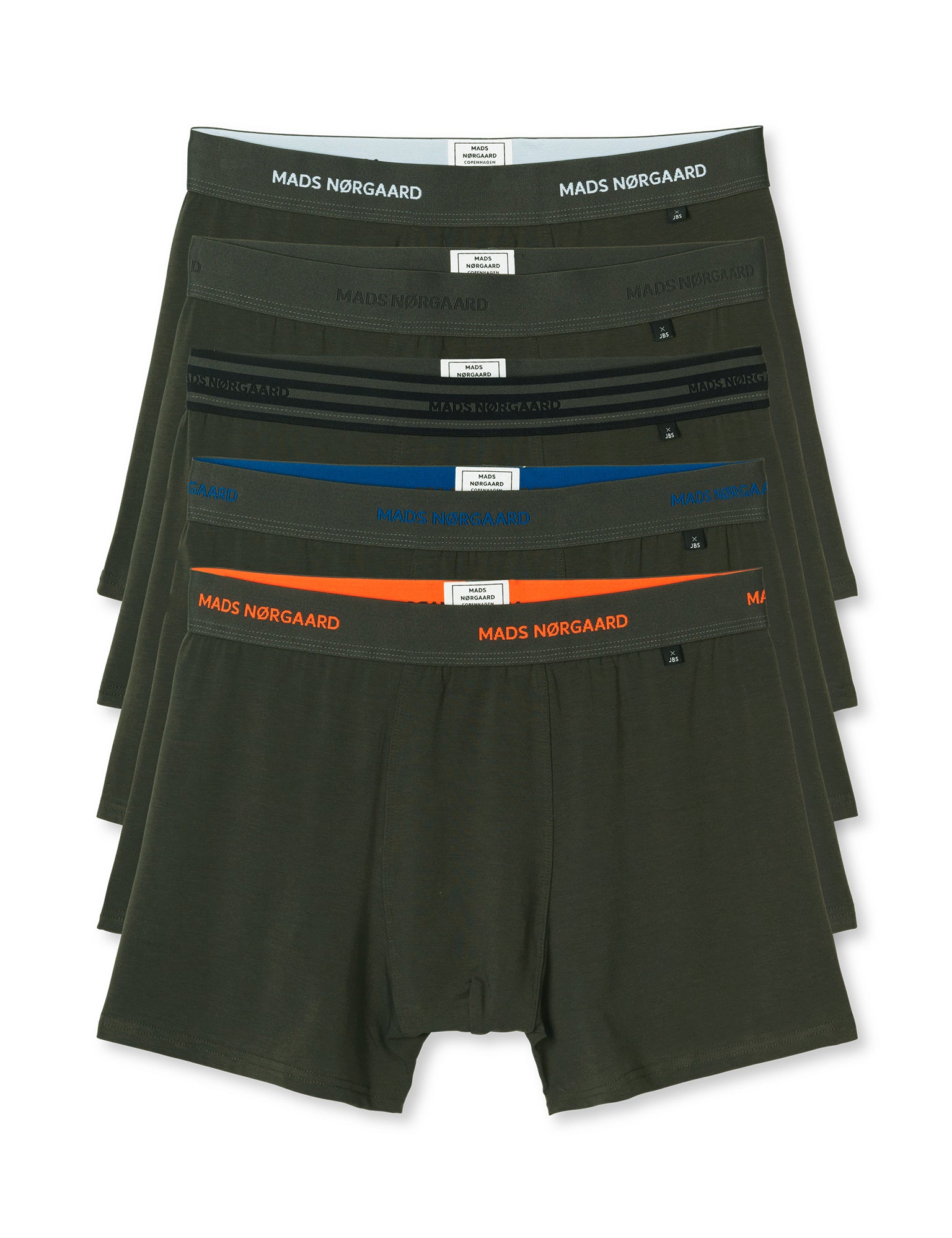 These tights have a lovely classic design in true JBS style and with Mads Nørgaard's iconic stripes. Made from bamboo viscose, these tights offer exceptional softness and comfort. Bamboo cultivation requires no pesticides or irrigation, making these tights an eco-friendly choice. OCS-certified and made in a closed process that saves up to 180 litres of water per pair compared to conventional production. This 5-pack gives you five pairs of army green tights with different coloured elastic waistbands.