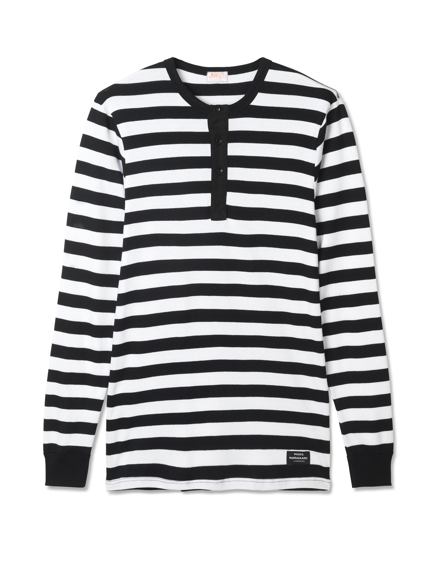 Inspired by a rich legacy of craftmanship, the Original Cotton rib range has a timeless design that dates back to the 1940s. With its seamless design for added comfort, this GOTS-certified collection blends heritage and quality, offering timeless appeal for the modern wearer. This grandad top with black and white stripes features the Mads Nørgaard logo on the side.