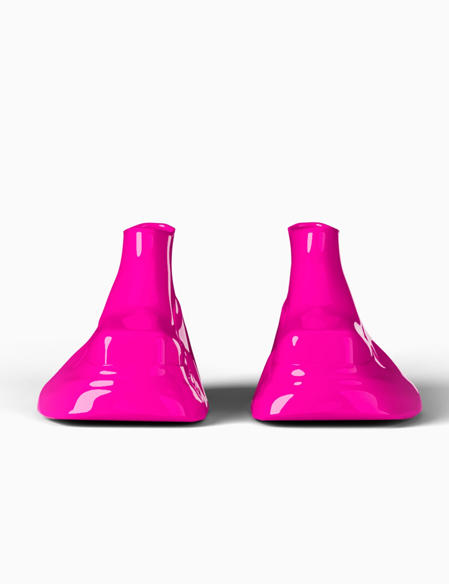 Chunky platform boots with a glossy magenta pink surface. Designed and developed in Denmark for Mads Nørgaard x Phanta first colab edition. They can be worn and played around with digitally as an Instagram AR filter – activated through a link in your confirmation email.