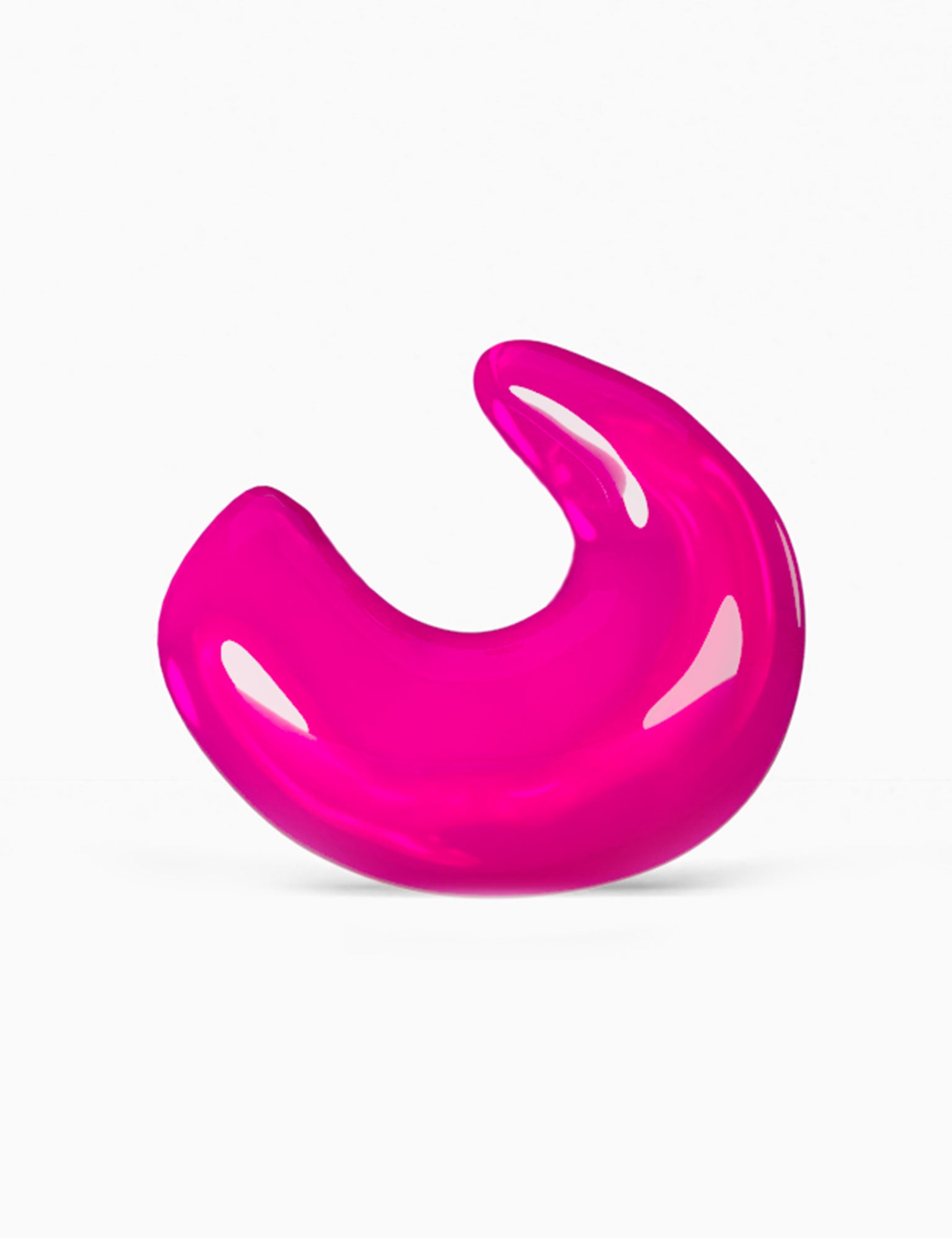Oversize selfie-perfect hoops. Bright magenta pink with a wobbly jellylike texture. Designed and developed in Denmark for Mads Nørgaard x Phanta first colab edition. They can be worn digitally as an Instagram AR filter and are activated through a link in your confirmation email. Feel free to experiment and play around with them - they’re yours!