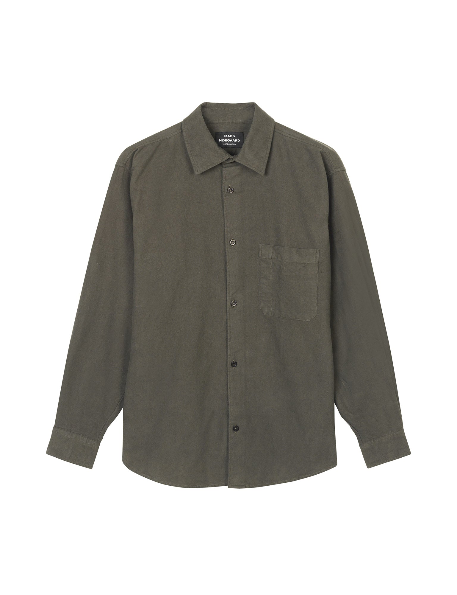 Moleskin Storm Work is a soft organic cotton shirt. It has a loose and relaxed fit, a breast pocket, small buttons and a cut-away collar.