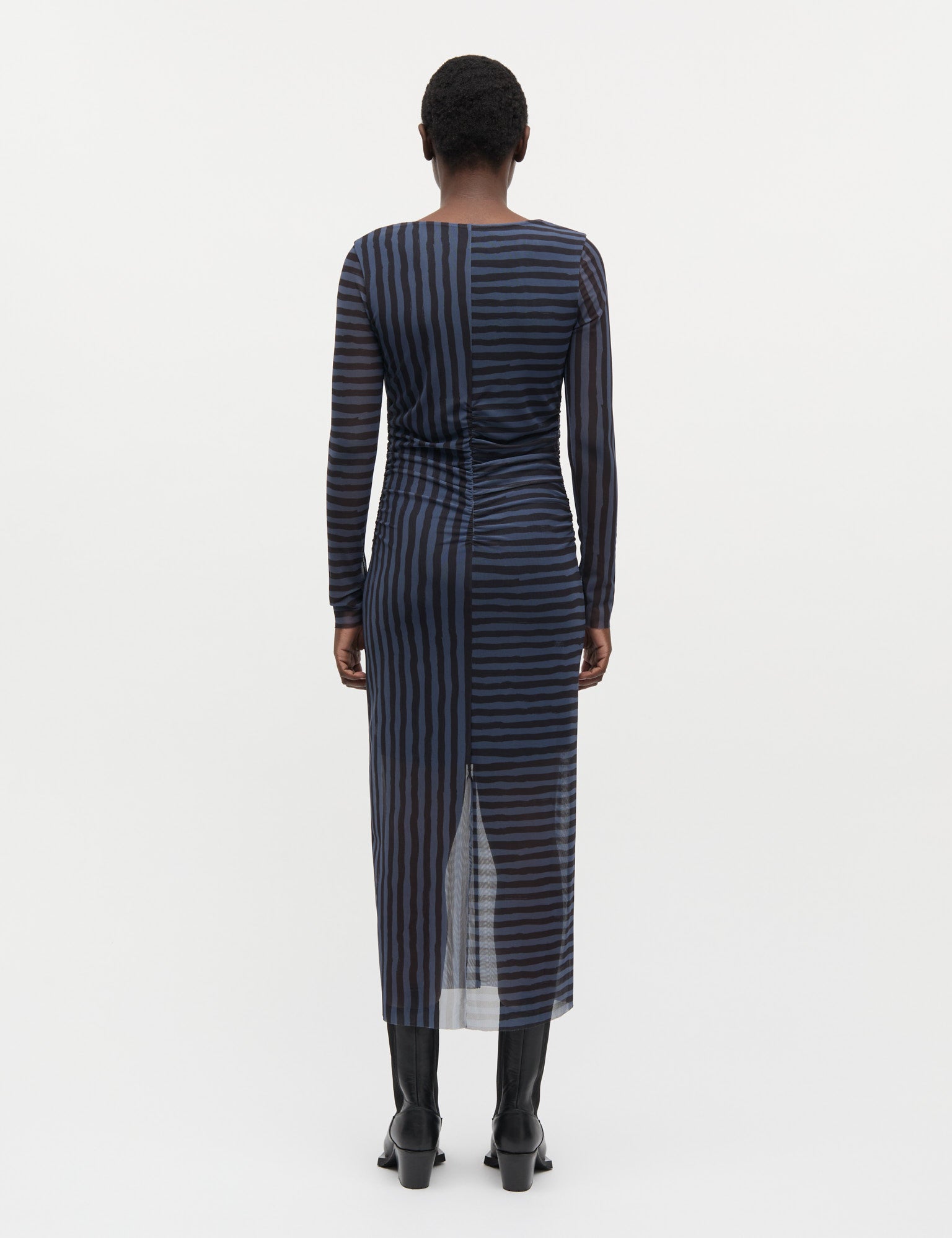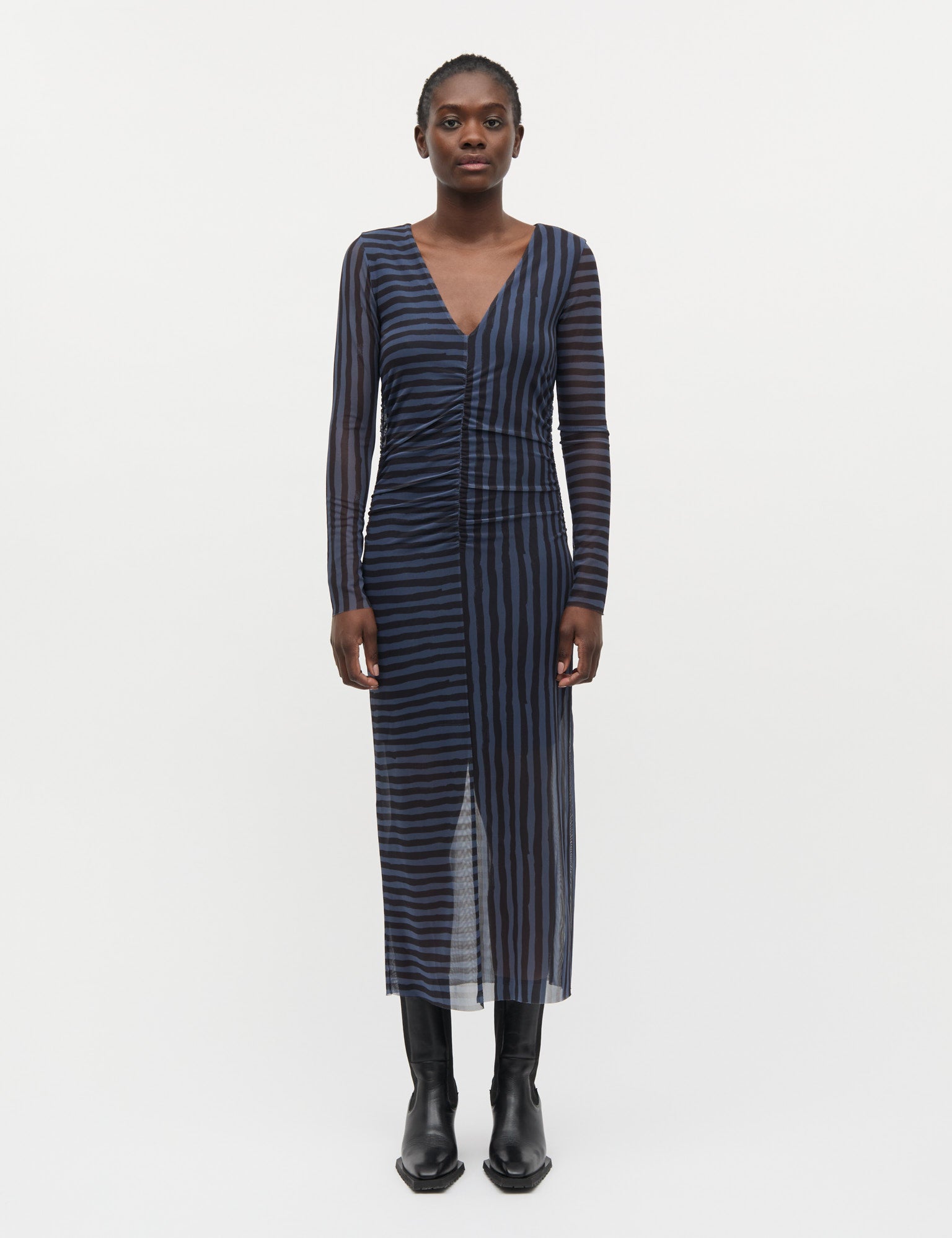 Fitted, stretchy mesh dress with long sleeves, V-neck and thigh-length petticoat.