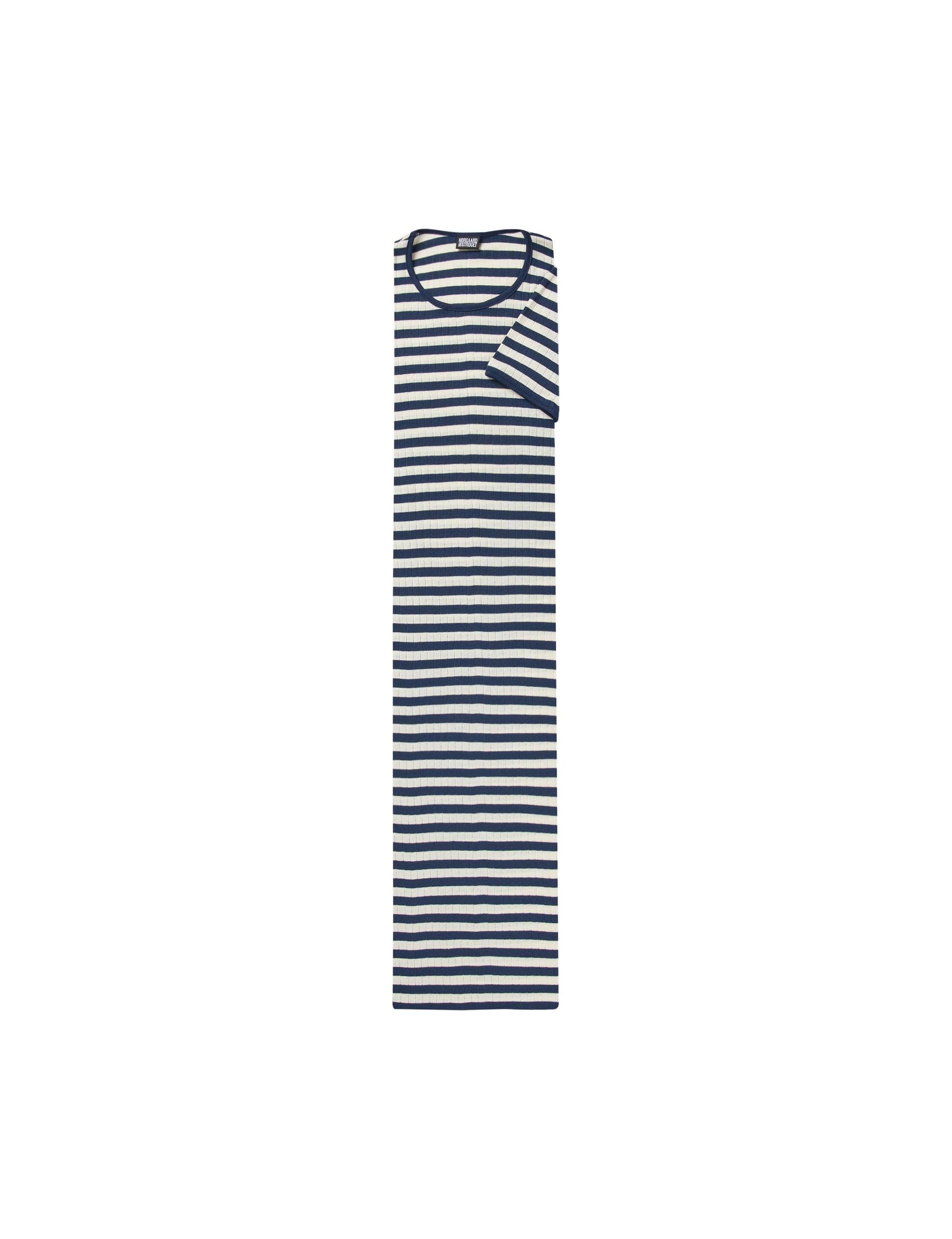 NPS John Dress Short Sleeve Broadway is a knee-long dress based on the design of the classic NPS #101 T-shirt. The NPS John Dress is a redesign of the classic NPS #101 T-shirt designed by Jørgen Nørgaard in 1967. The dress was first designed back in the 70’s and is still knitted and sewn in Denmark from 100% bci Cotton. The John dress is one-size and has short sleeves.