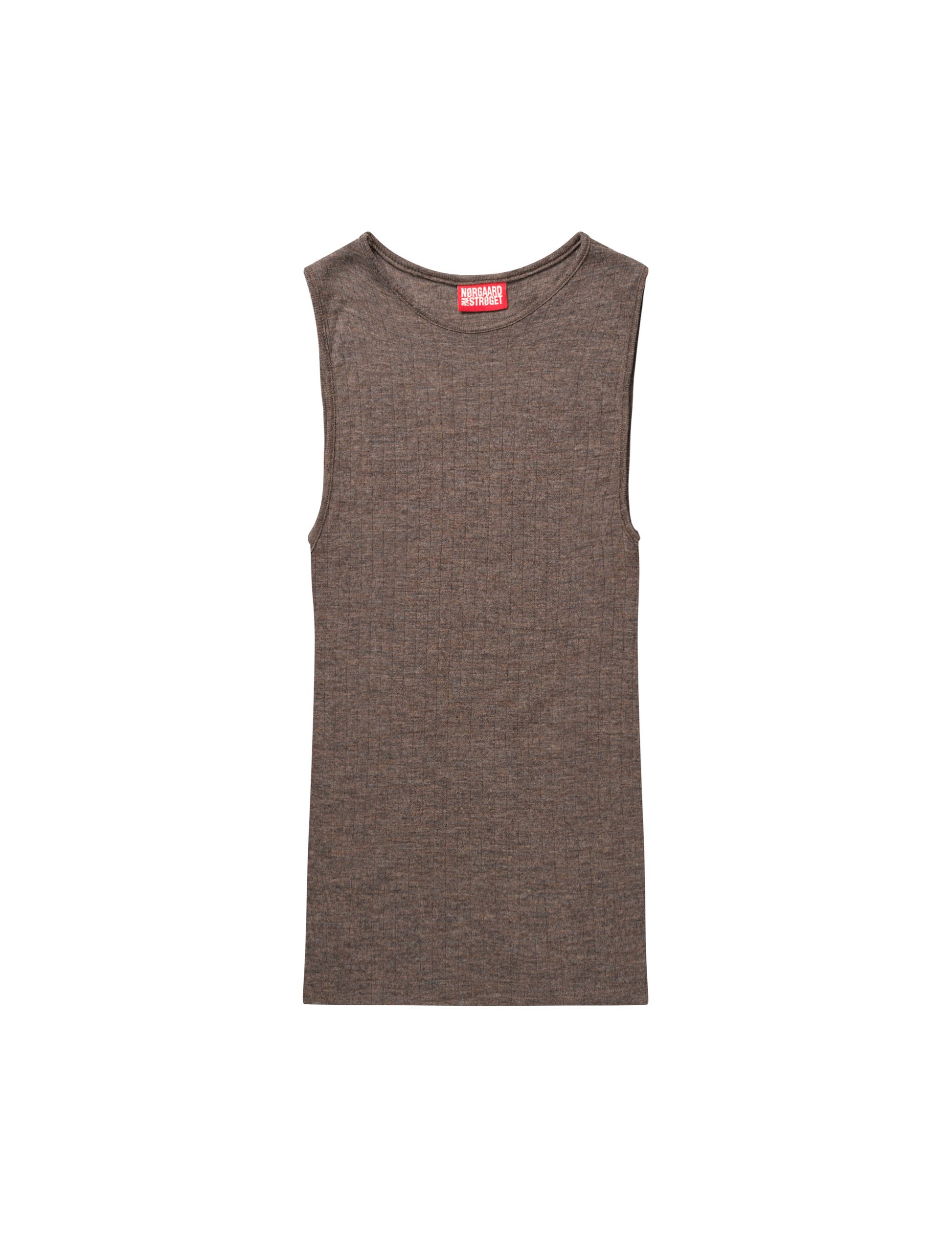 NPS Tank Top Wool is a top with wide shoulder straps based on the design of the classic #101 T-shirt. The NPS top is a redesign of the classic NPS #101 T-shirt designed by Jørgen Nørgaard in 1967. The top was first designed back in the 90’s and is still knitted and sown in Denmark from 100% merino wool. The top is one-size.