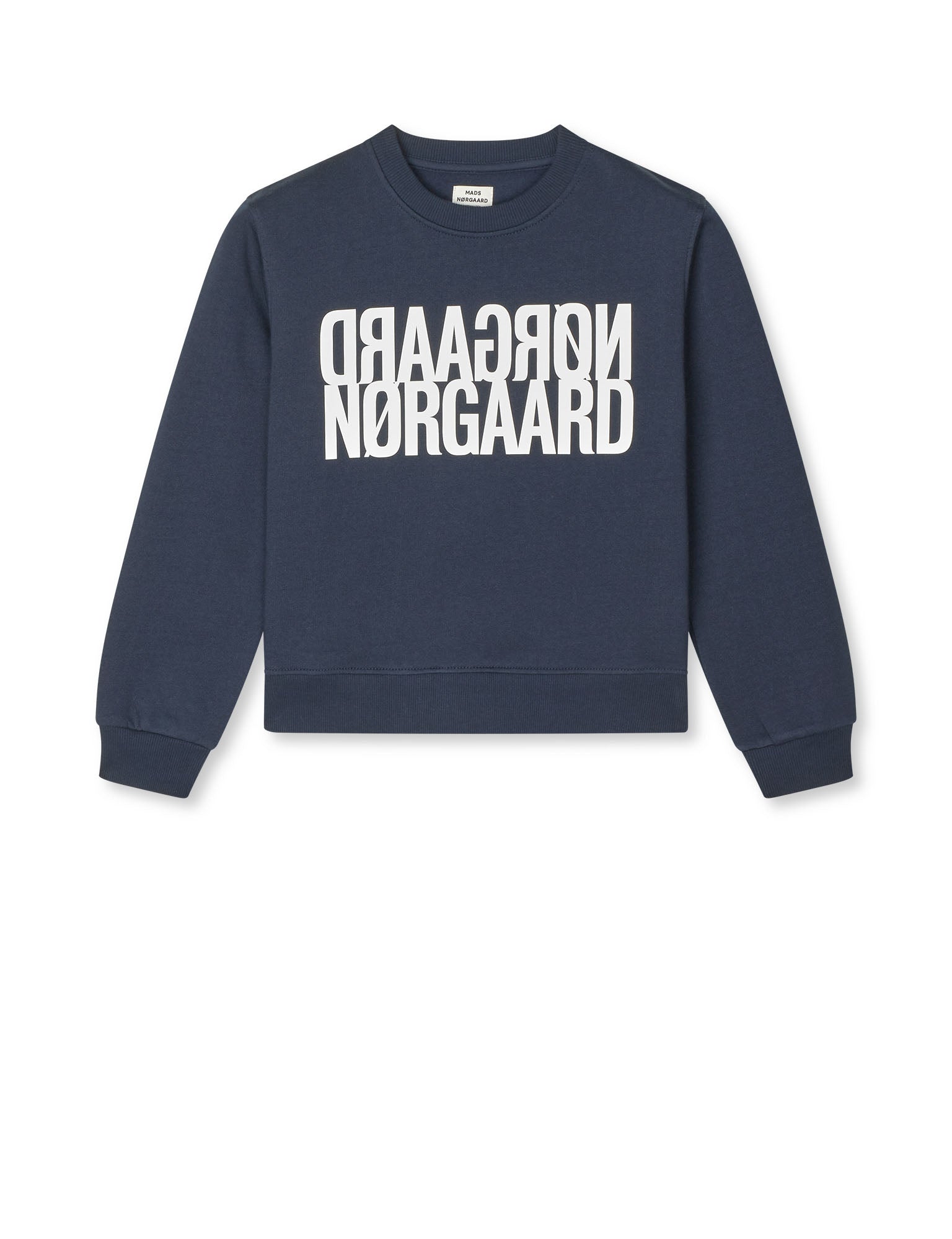 Soft and boxy sweatshirt with crew neck, ribbed edges and large, partially mirrored logo print on the chest.
