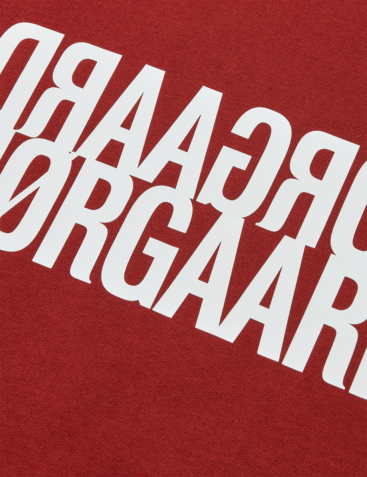 Soft, boxy, slightly oversized waist-length sweatshirt with a large, partially mirrored logo print on the chest.