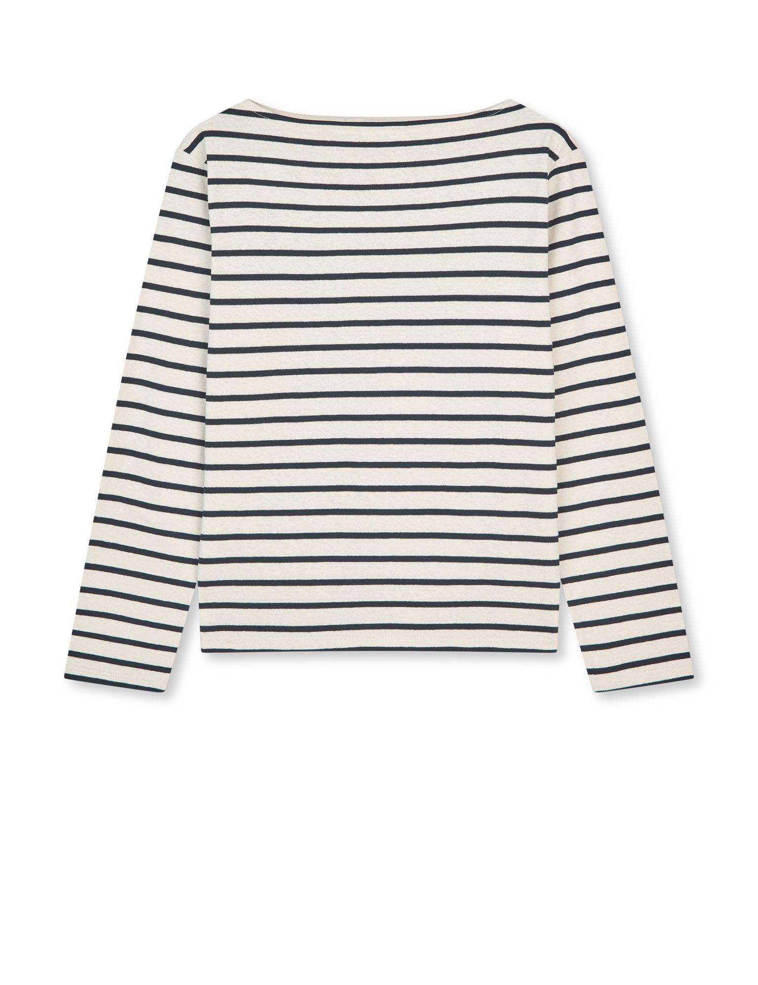 Long-sleeved blouse with a straight fit, boat neckline and horizontal stripes.