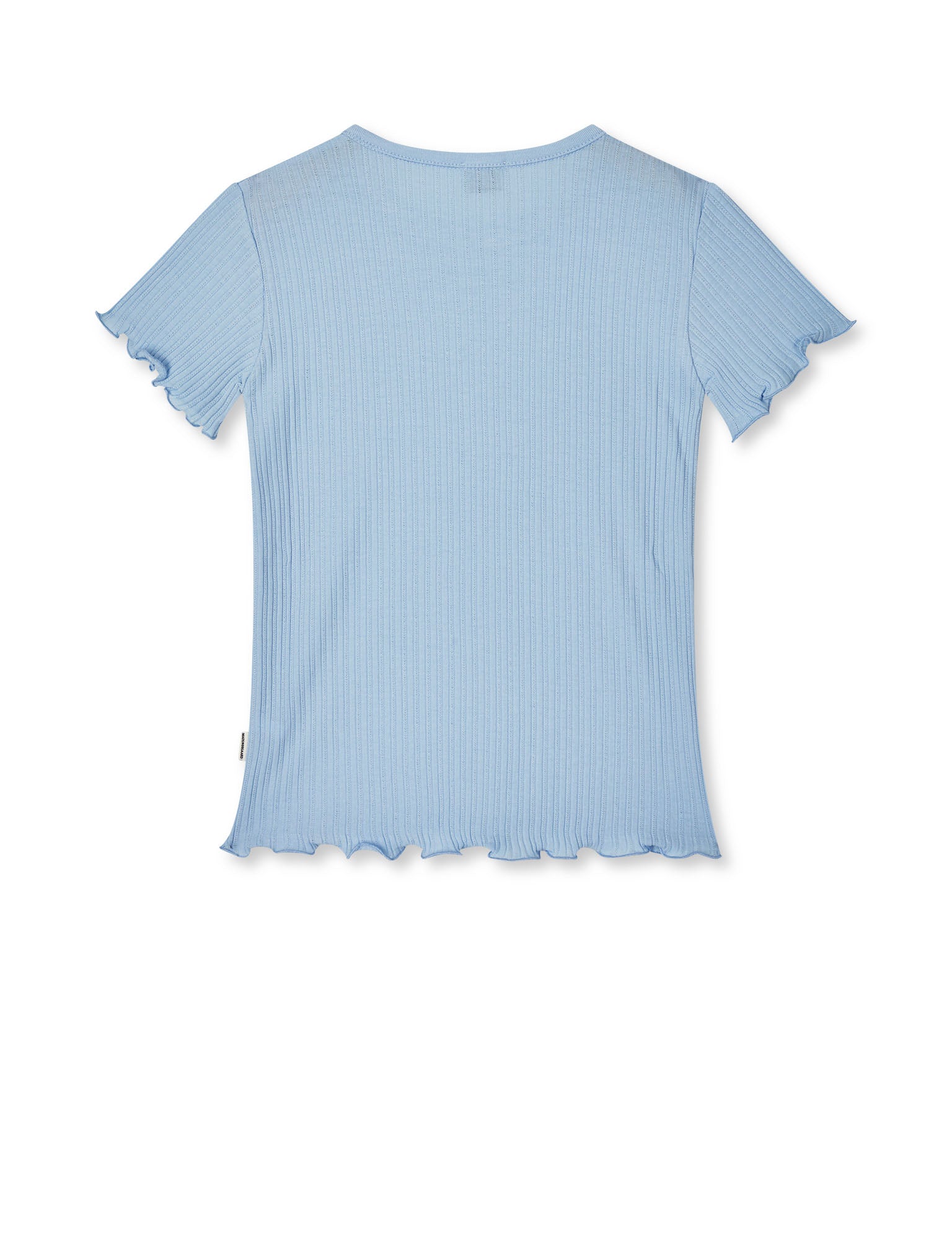 T-shirt in stretchy ribbed jersey with curled edges, a round neckline, and a delicate eyelet pattern.