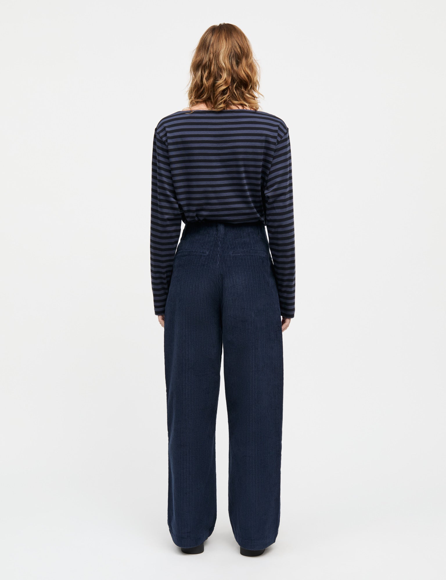 Soft and loose-fitting corduroy trousers with wide legs, hidden pockets and fixed waistband with belt loops.