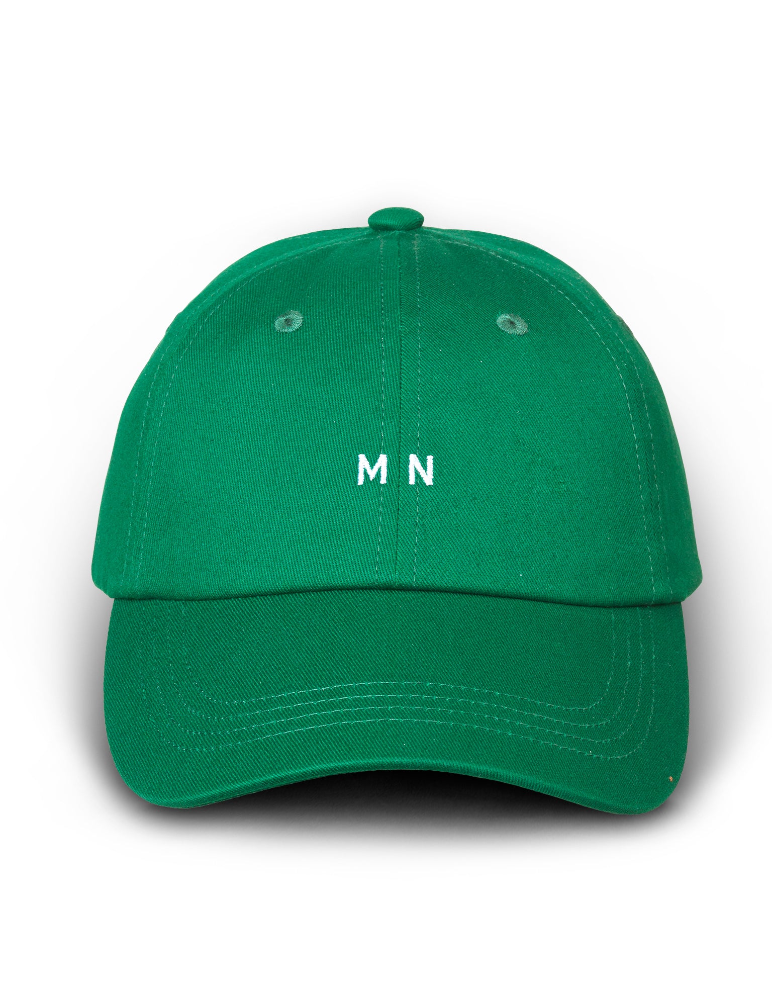 The Recy Twill Coal Cap is made from recycled cotton. A button gathers the fabric at the top, while the front is adorned with embroidered initials. The back features a strap and buckle.