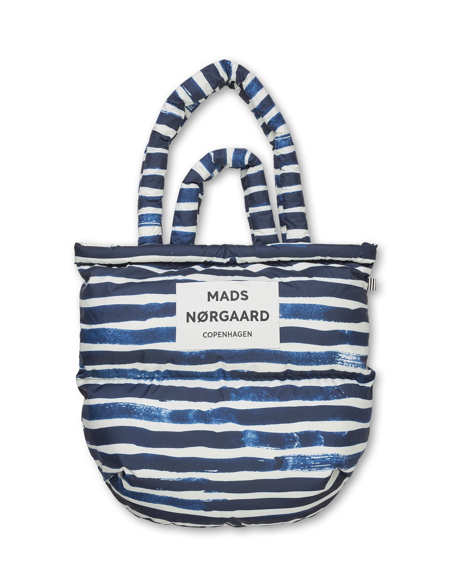 Our shopper Light Ripstop Pillow AOP Bag is super spacious with a puffy look. It has handles in two lengths - two short ones for use as a handbag and two long ones for use as a shoulder bag. The bag has an inner pocket and can be closed with a snap button. Total height, at the side: 38 cm. Total length, at the middle: 47 cm.