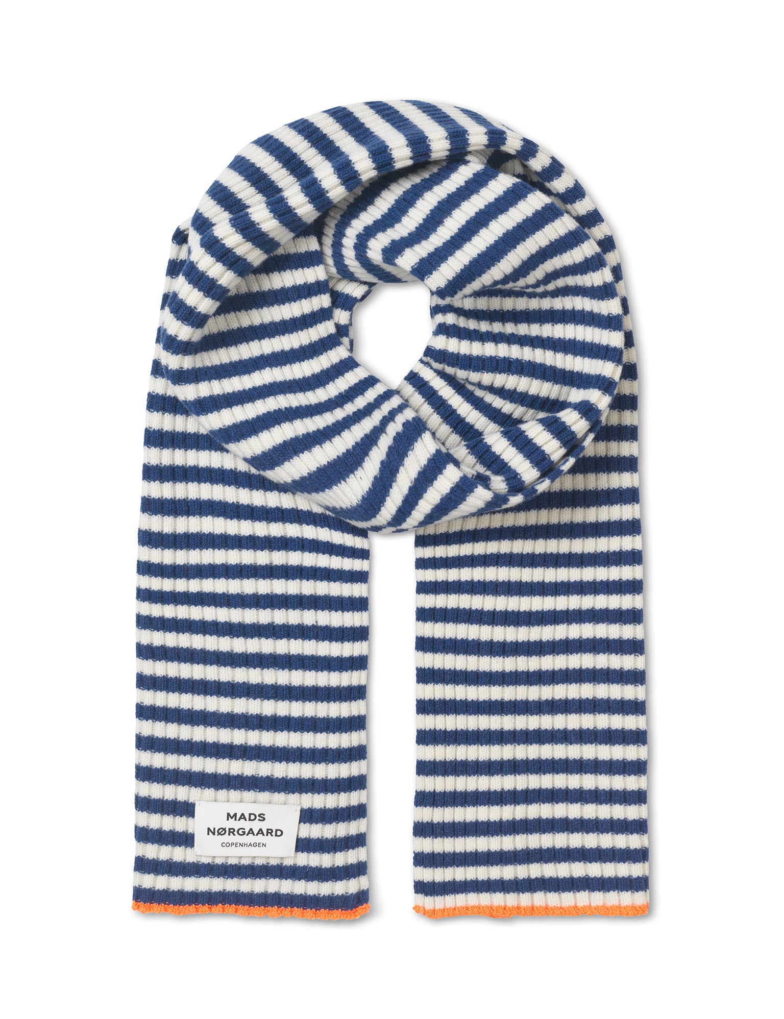 The ribbed Recycled Iceland Grafenau Scarf is woollen and super soft, no fringe but with a logo label, stripes and contrast trim. Total length and width: 180x30 cm