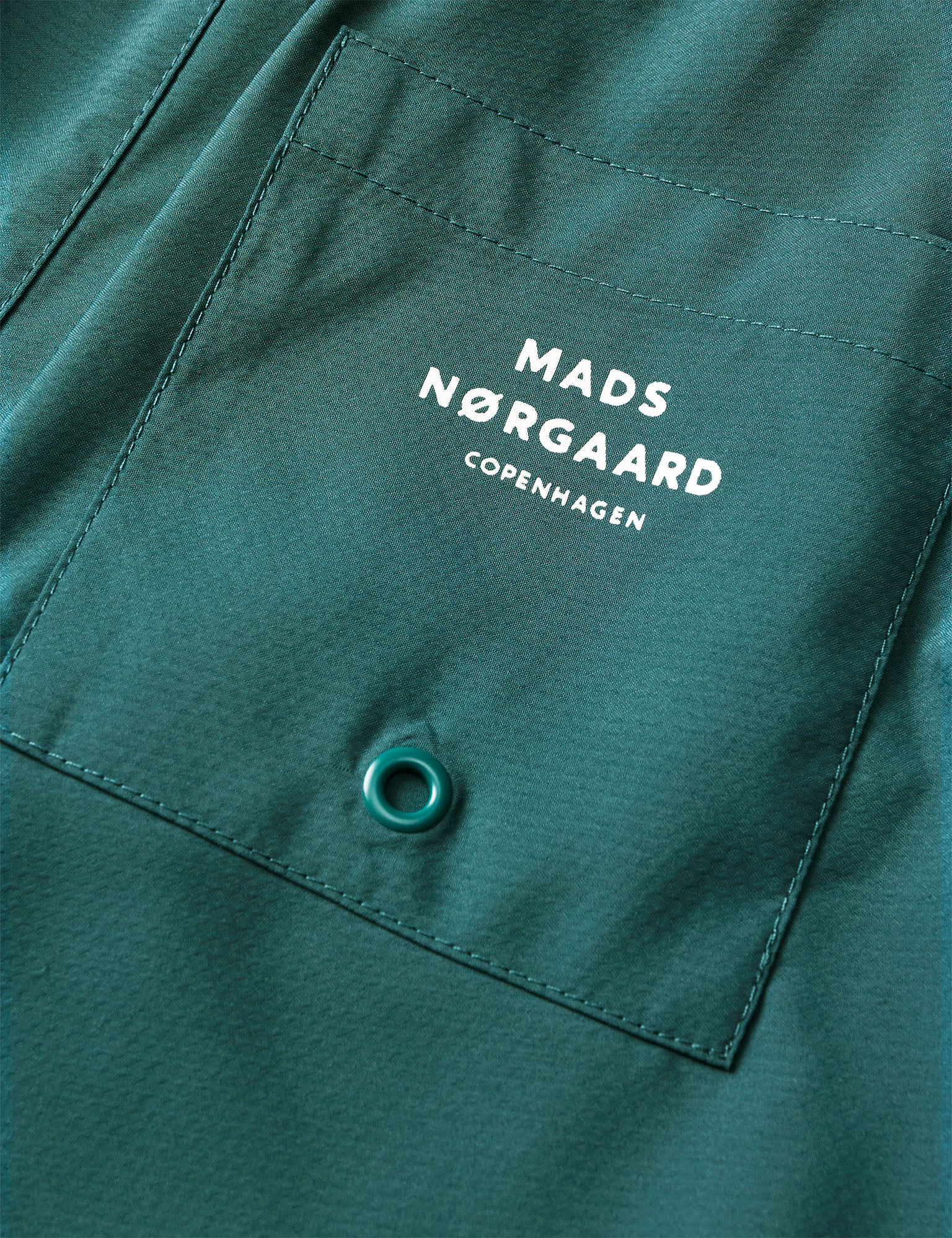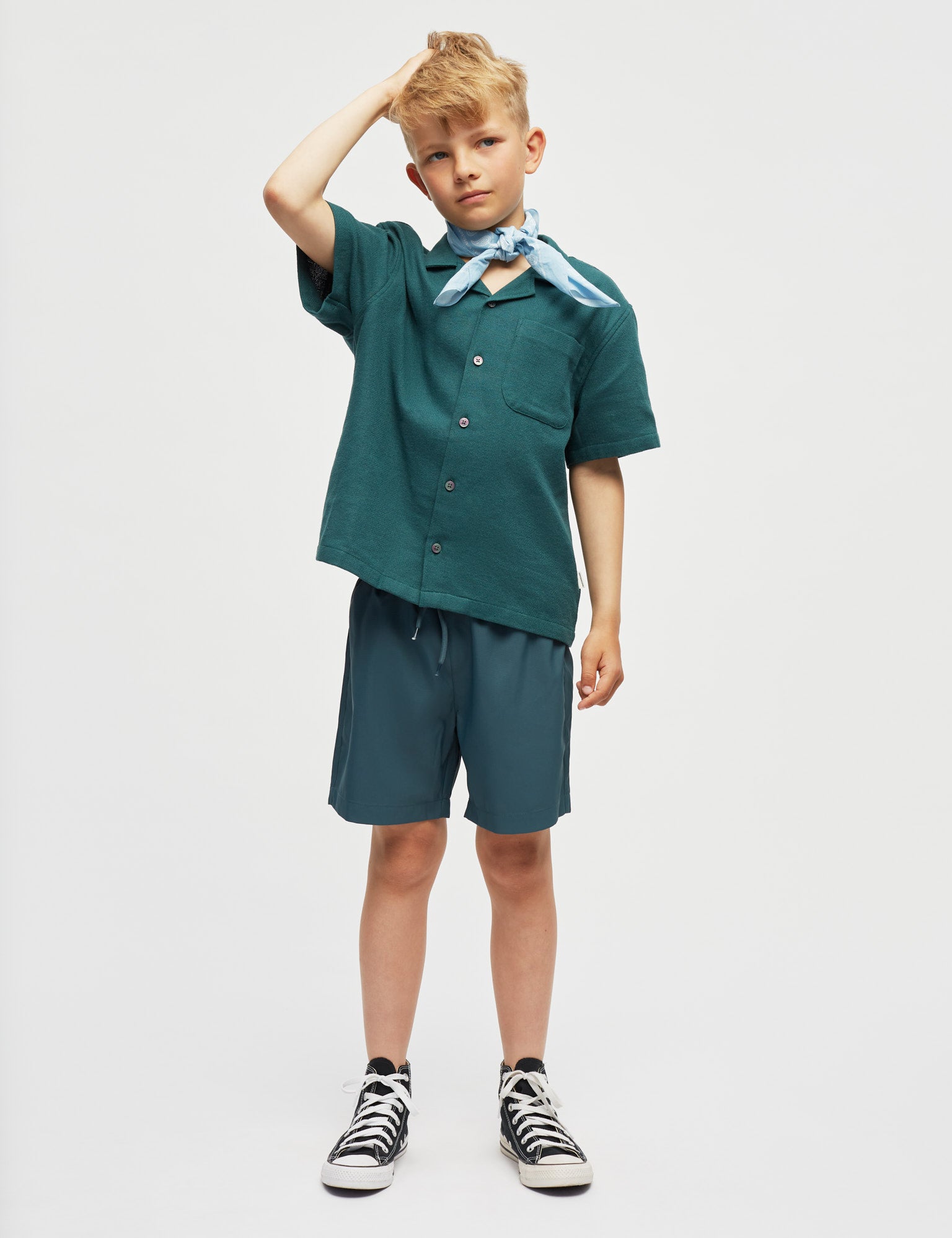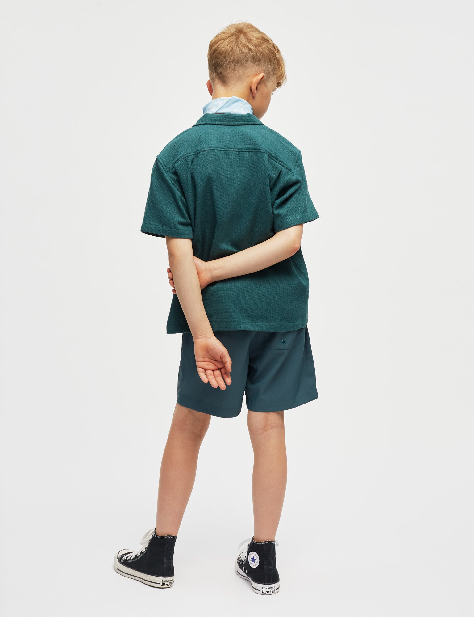 Lightweight shorts in quick-drying polyester with elastic waistband with drawstring, back pocket and mesh lining.
