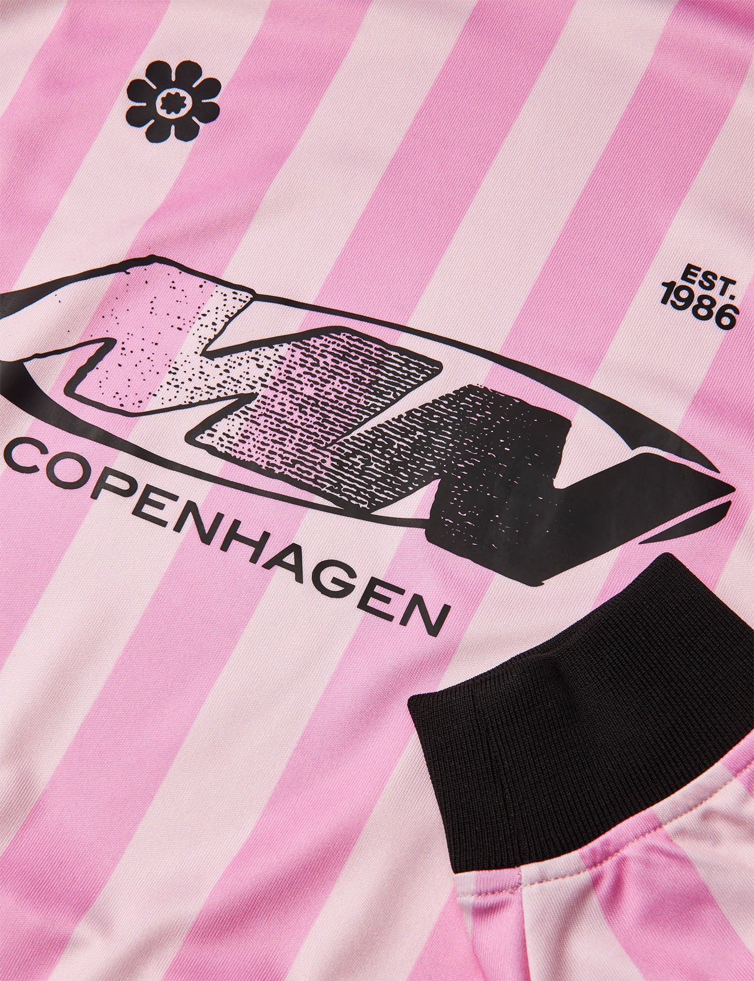 Smooth, shiny and oversized football-inspired dress with a high waist, long sleeves, piping and contrast trim on the neck and wrists.