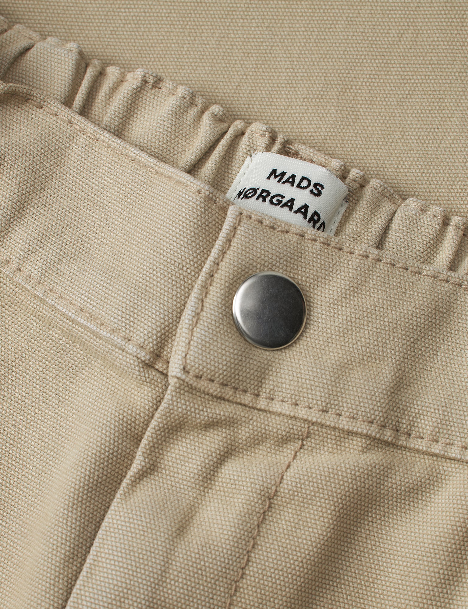 Our pants Soft Canvas Cargoni Pants are made of 97 % organic cotton and 3 % elastane that is woven into soft and stretchy canvas. The fit is slightly baggy with elastic waist and air around thighs and behind and the style is cargo with big pockets on the sides.