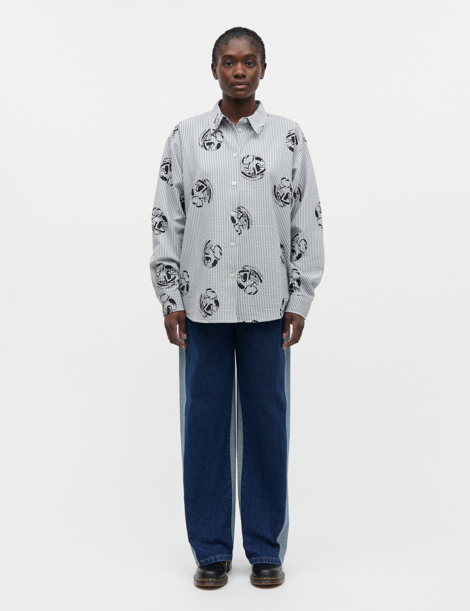 Oversized shirt with a turn-down collar, small buttons and cuffs.
