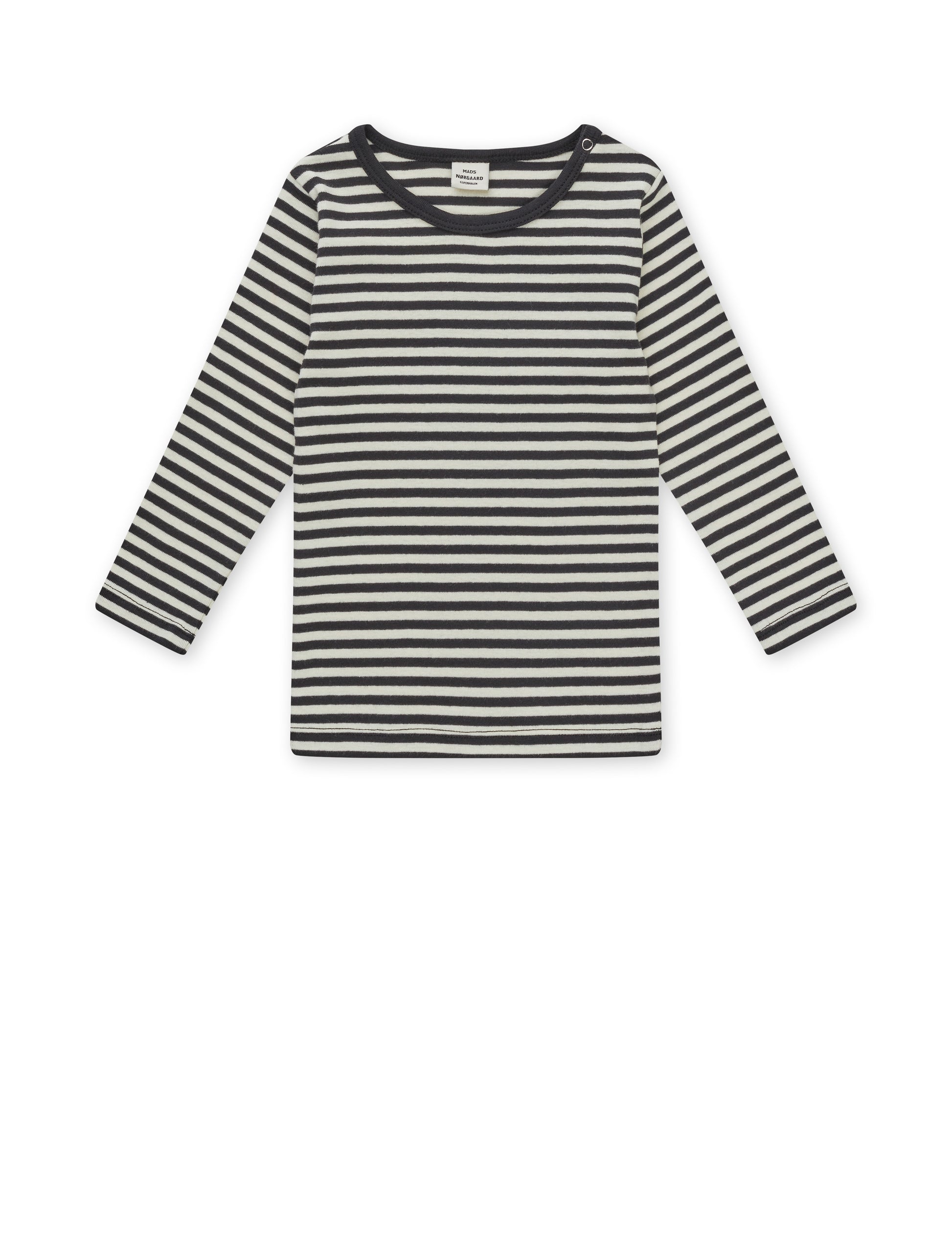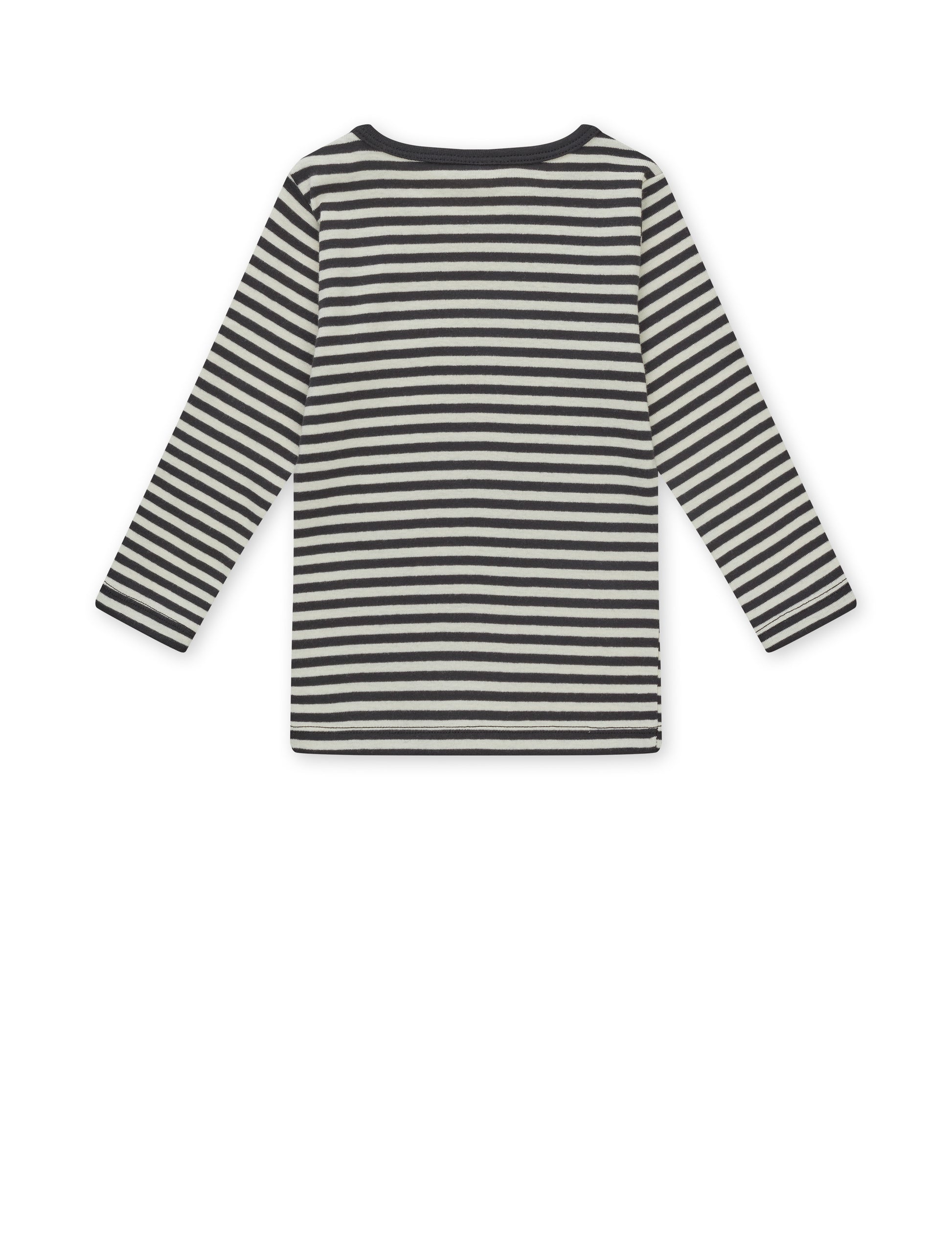 Striped long-sleeved t-shirt made in a soft cotton. Sizes 56 to 92 have buttons at the neck, sizes 98 to 104 do not.