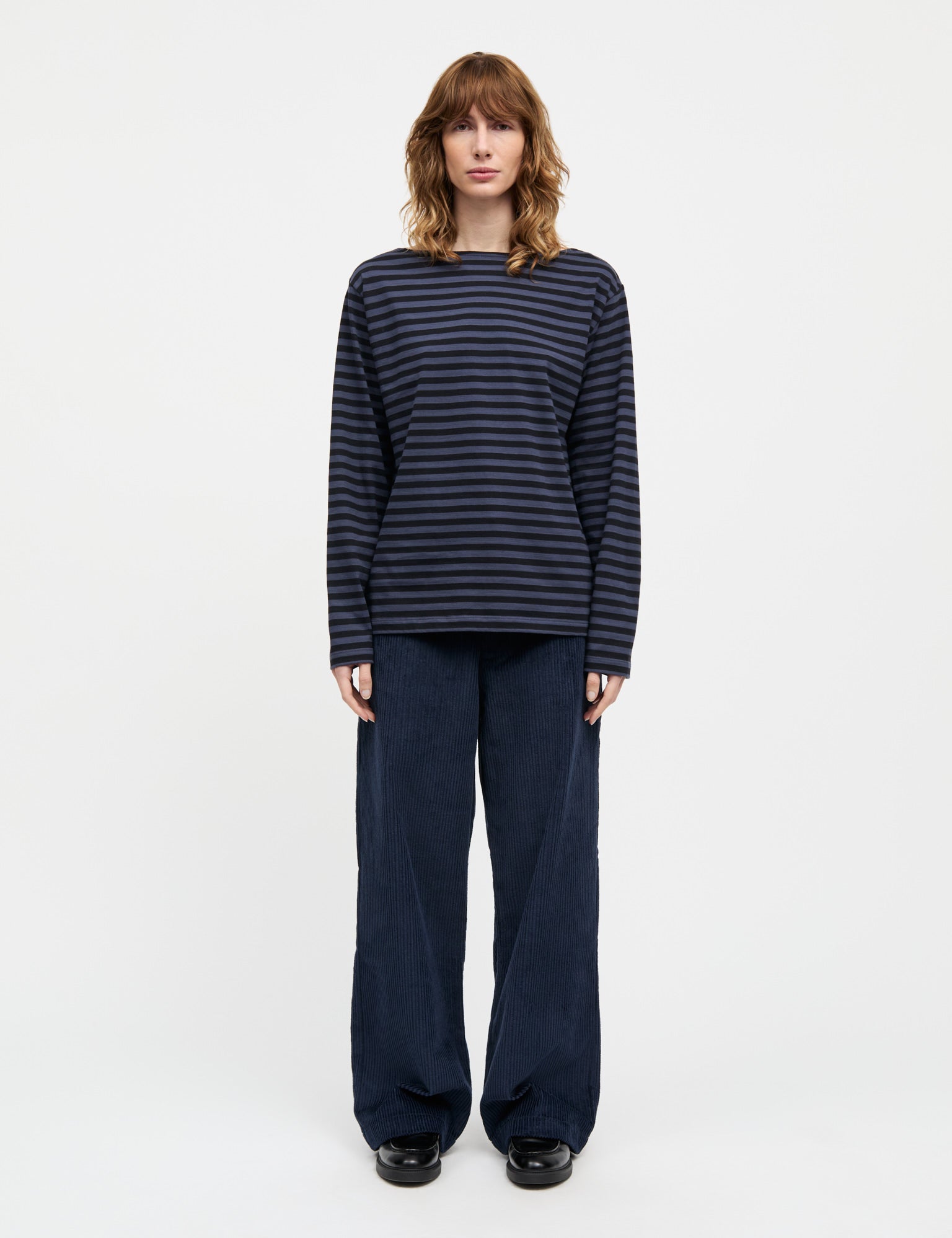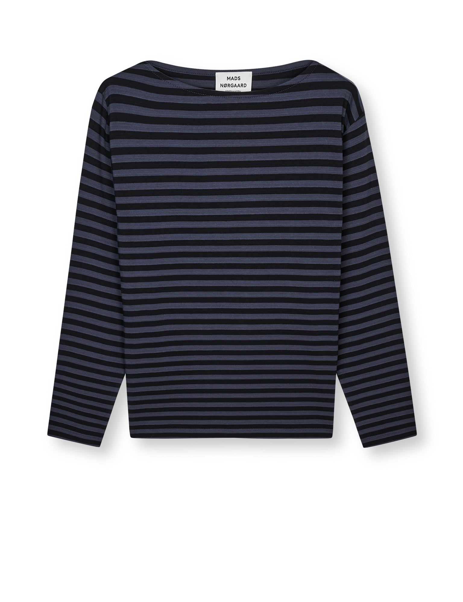 Soft and lightweight long-sleeved T-shirt with boat neckline and horizontal stripes.