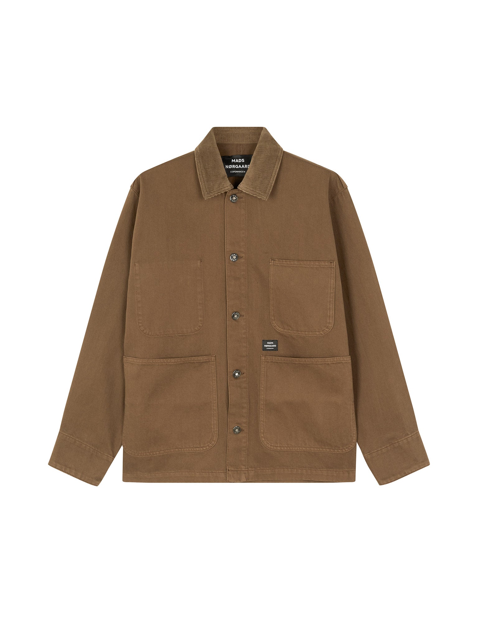 This denim jacket is made in a soft twill with three pockets. The fit is relaxed, the collar is in corduroy and on the front there is a small sewn-on logo.