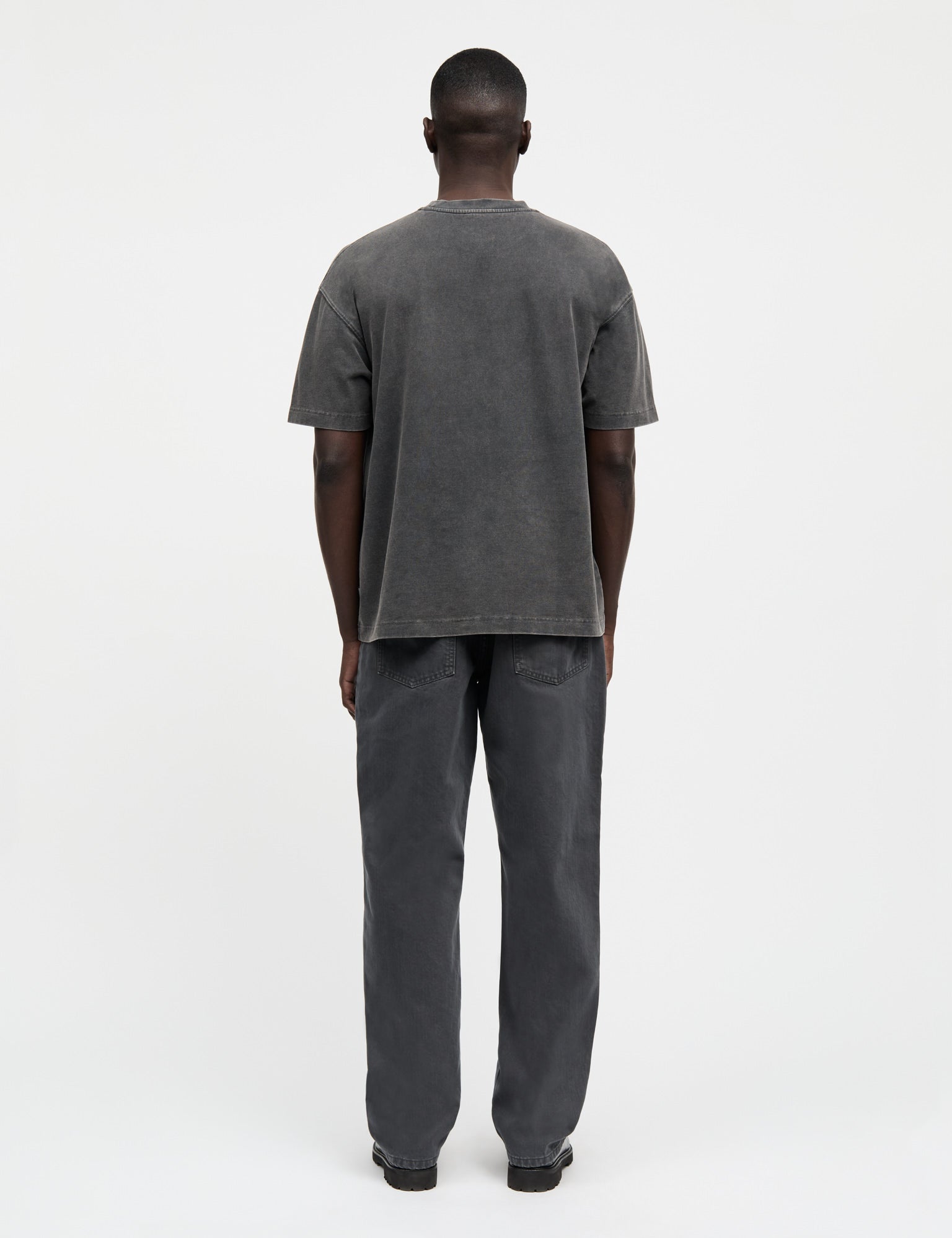 Loose-fitting 5-pocket jeans with straight legs, leather label at the back, zip and button.