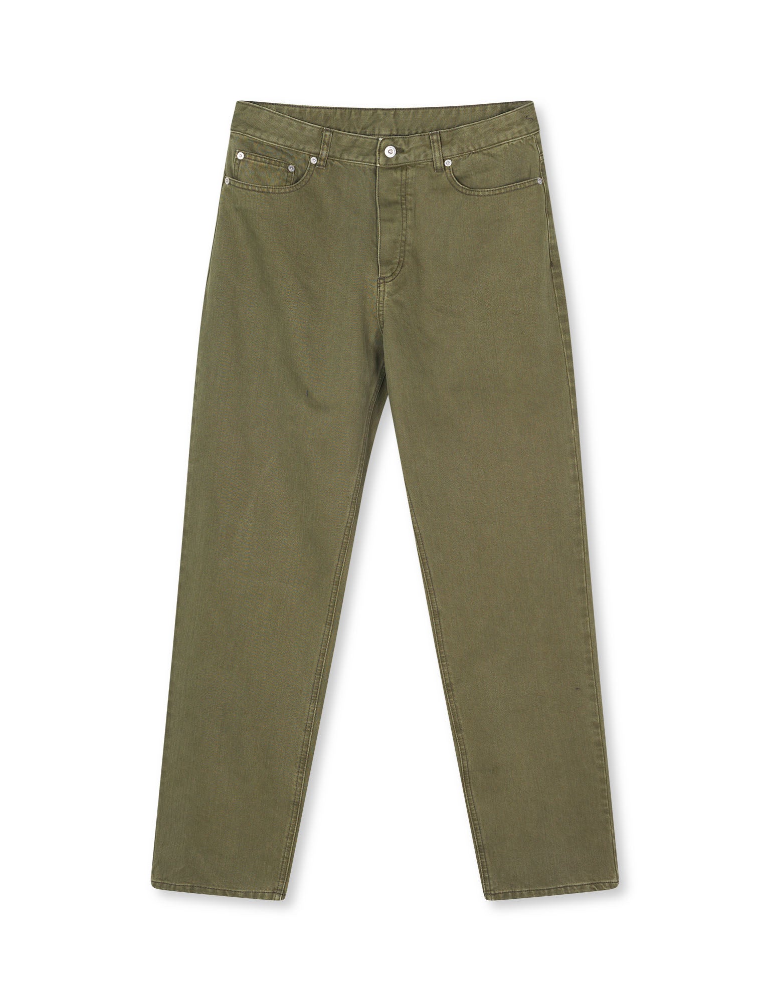Loose-fitting 5-pocket jeans with straight legs, leather label at the back, zip and button.
