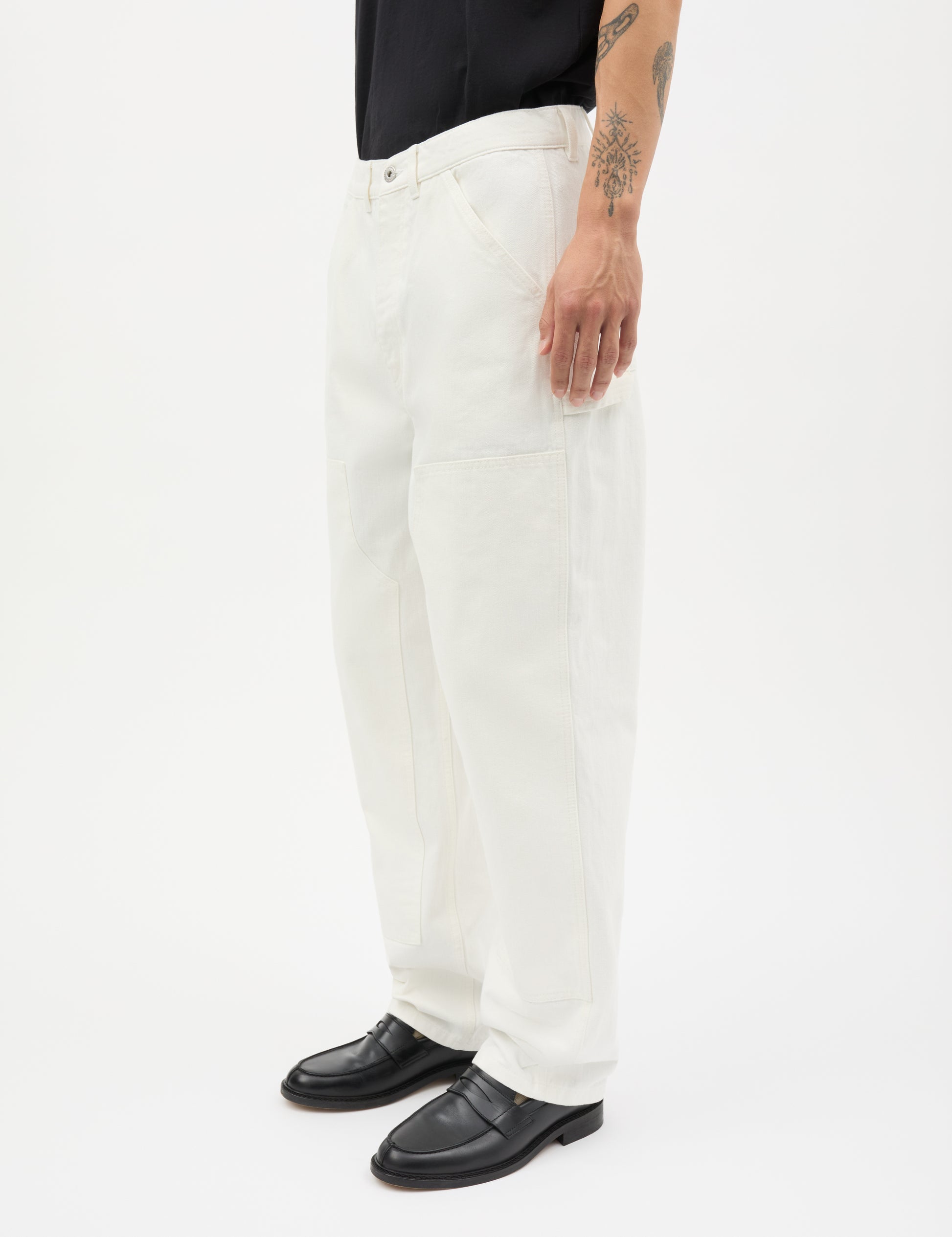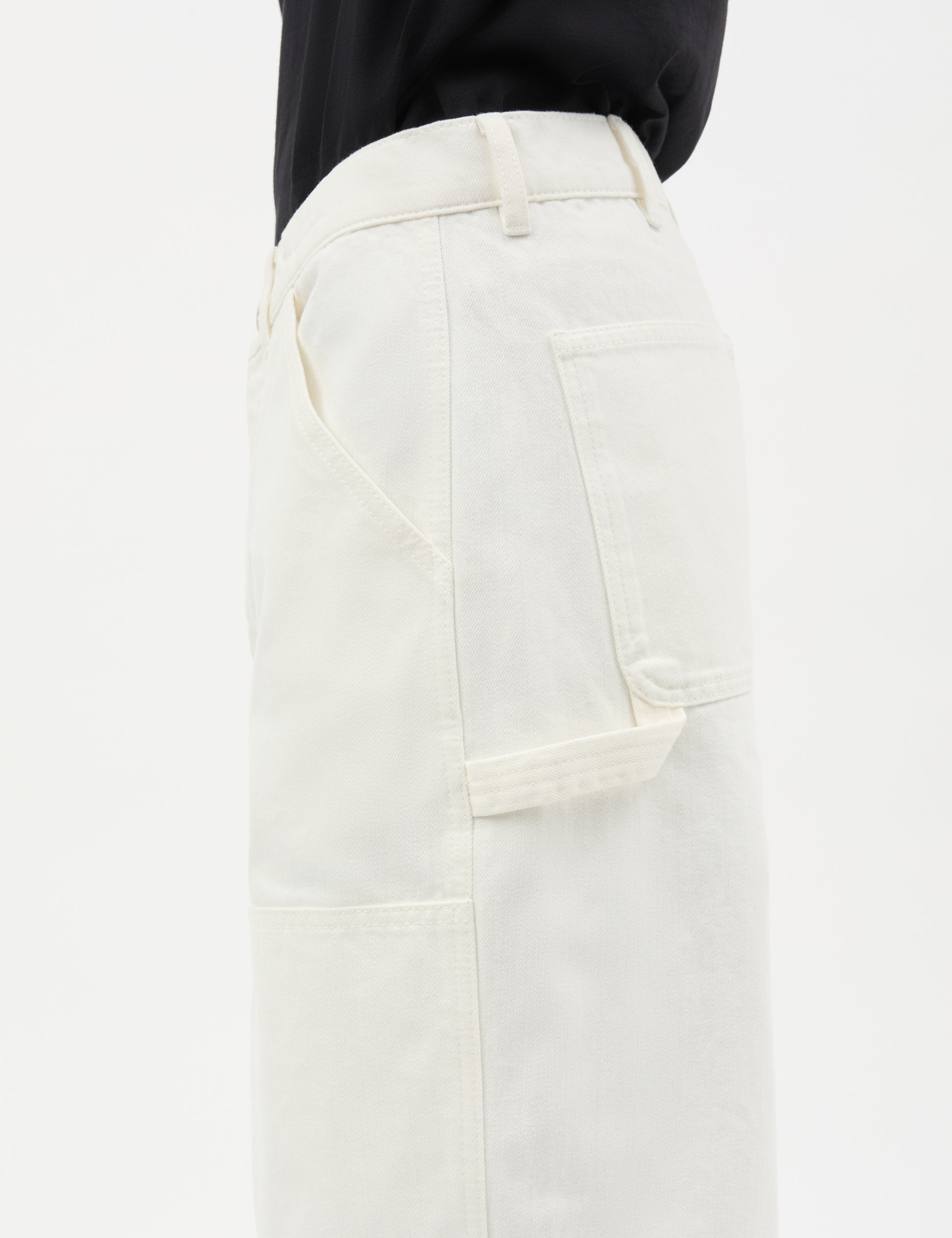 Five-pocket jeans, straight and slightly baggy jeans. Patch details on the front for a modern edge.