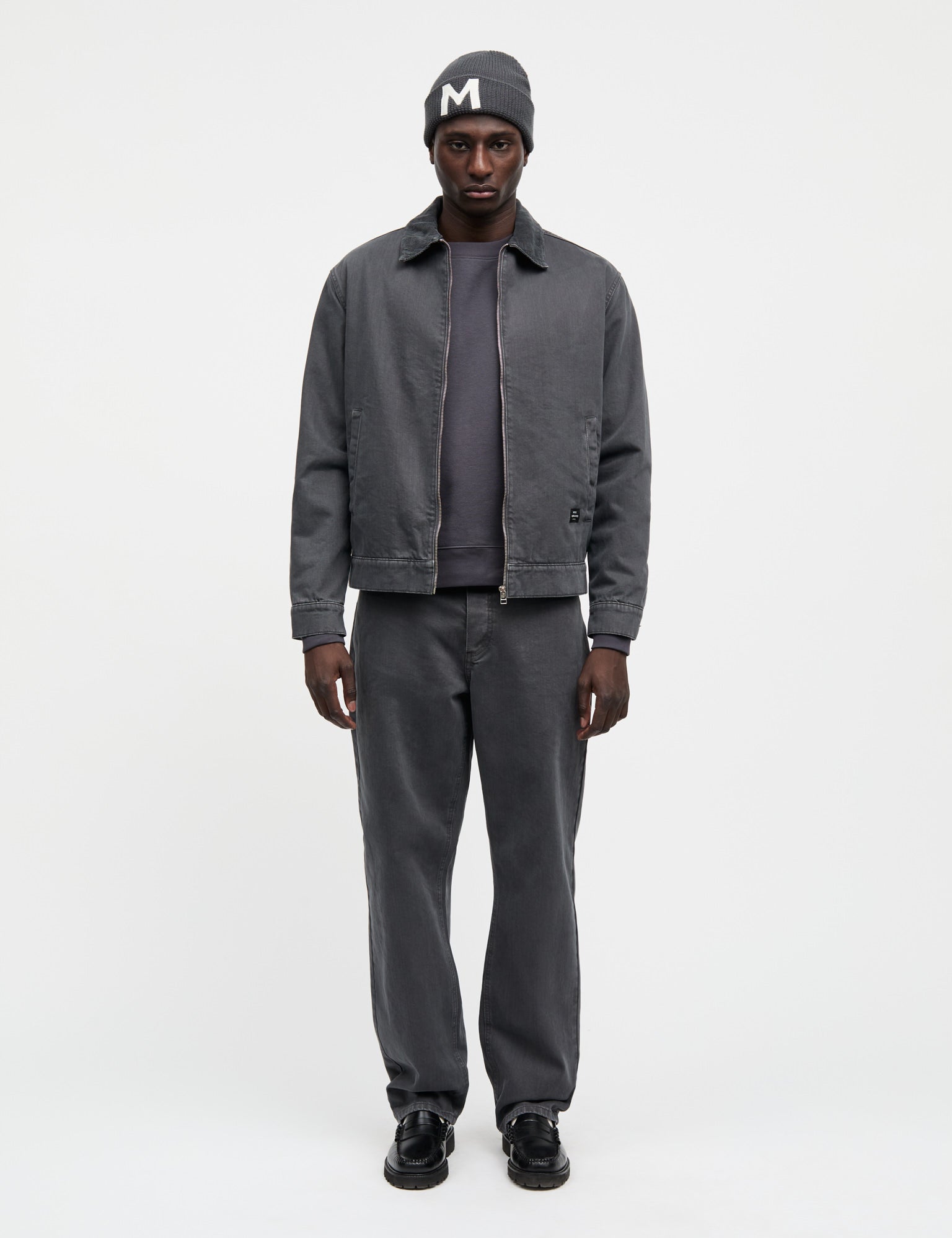Denim jacket in soft twill with a velvet collar, side pockets, zipper and a small logo patch on the front. The fit is slightly boxy, loose and relaxed.