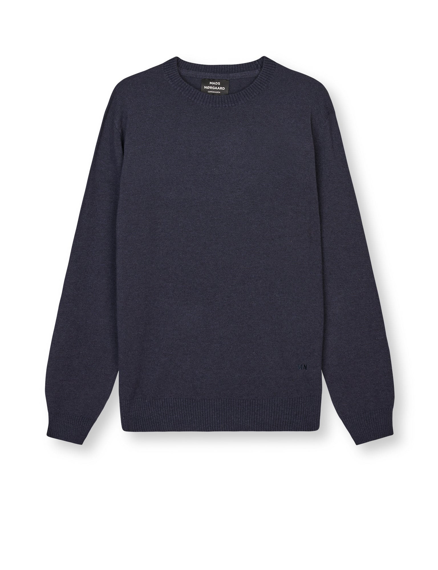 Soft knitted jumper with rib-knit trim and small initial-logo embroidered on the hip.