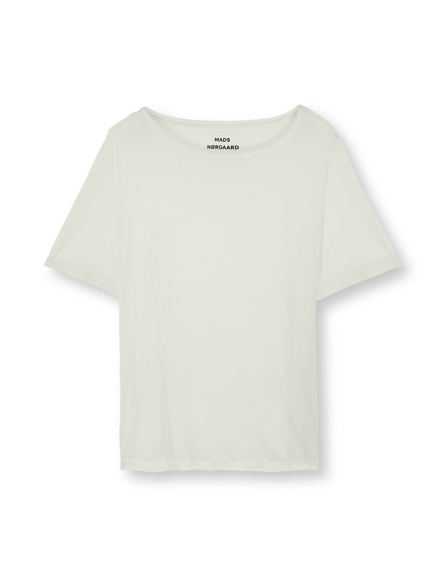 Tence Morty is a soft and lightweight short-sleeved T-shirt with a wide neckline. The fit is tight and slightly see-through.