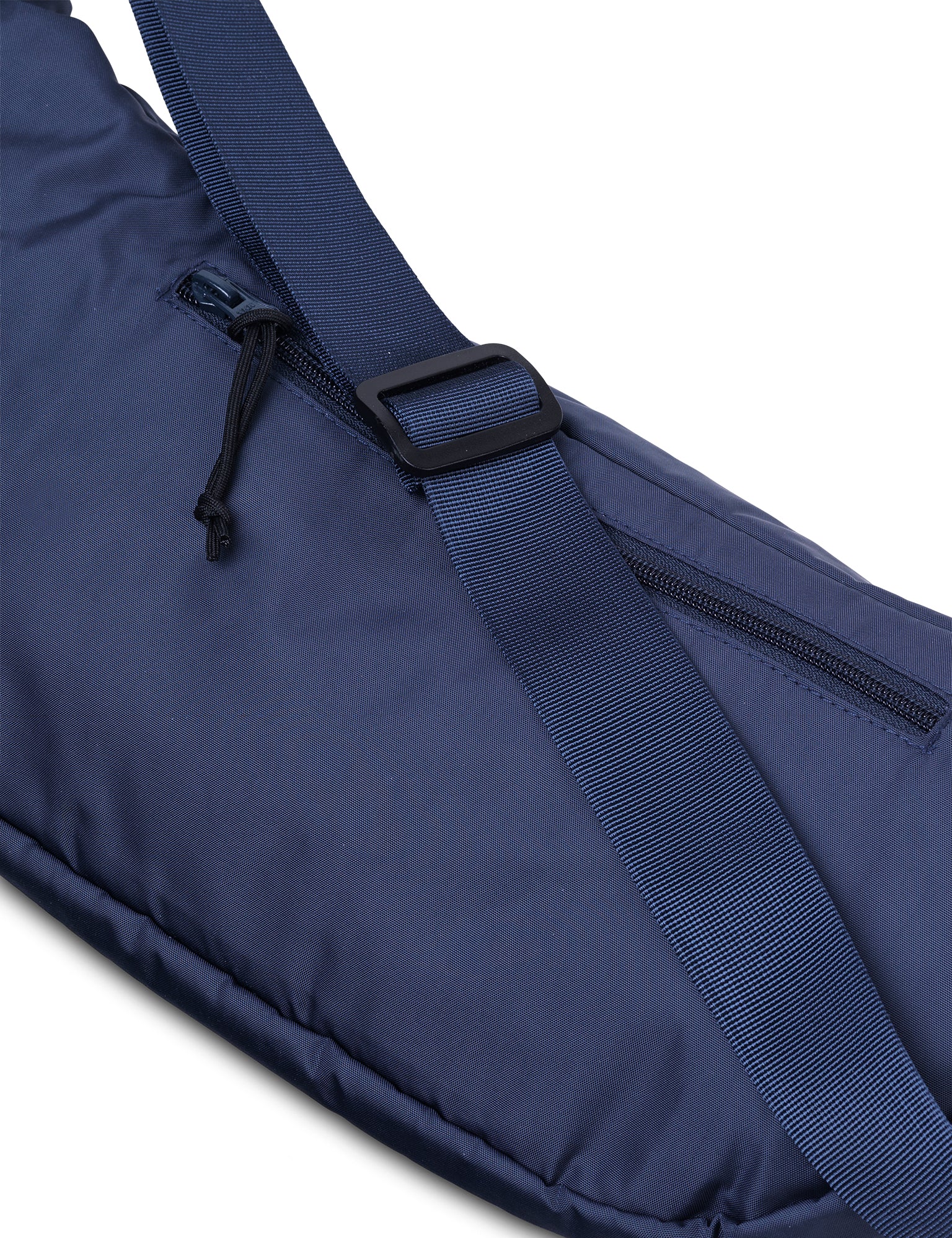 Tian Coco is a bumbag with an adjustable strap, zipper and four compartments: a front pocket, a back pocket and a pocket inside the large bumbag compartment. Total width at the top meas. straight from strap to strap: 46 cm. Total height at the back: 18 cm