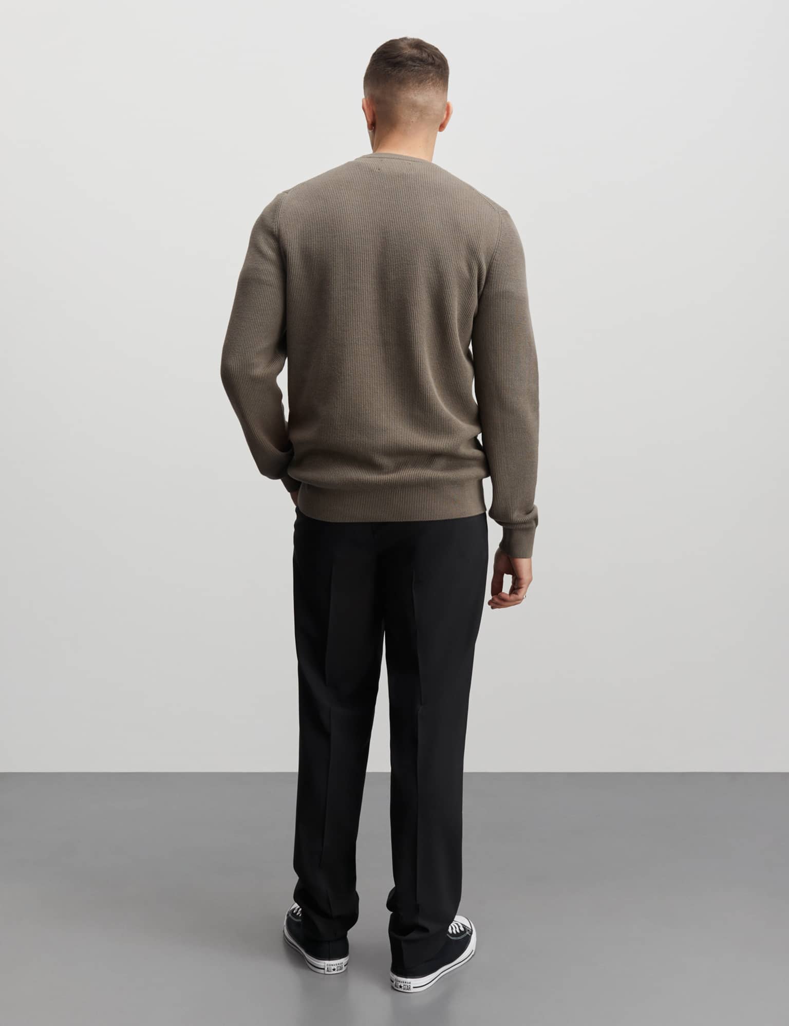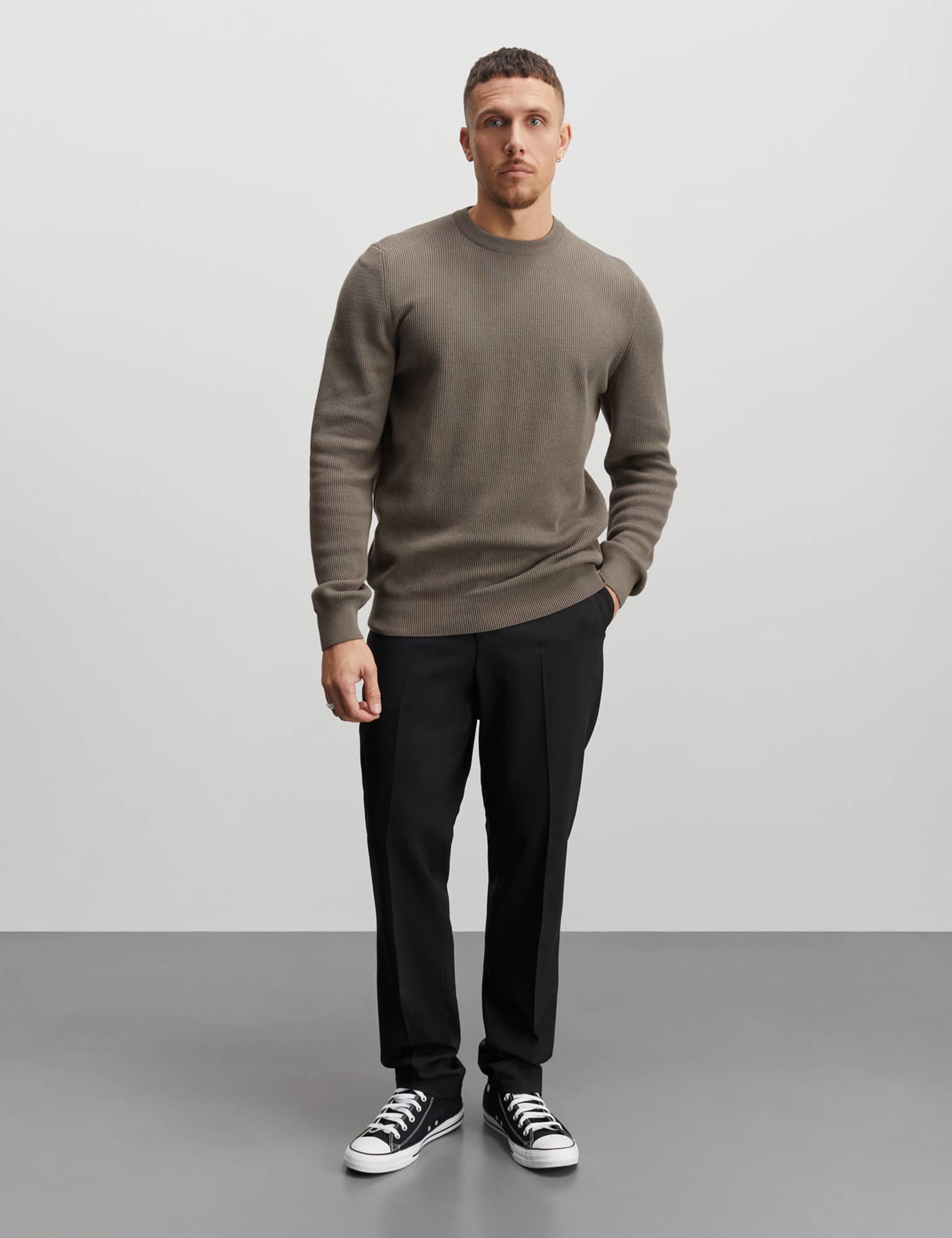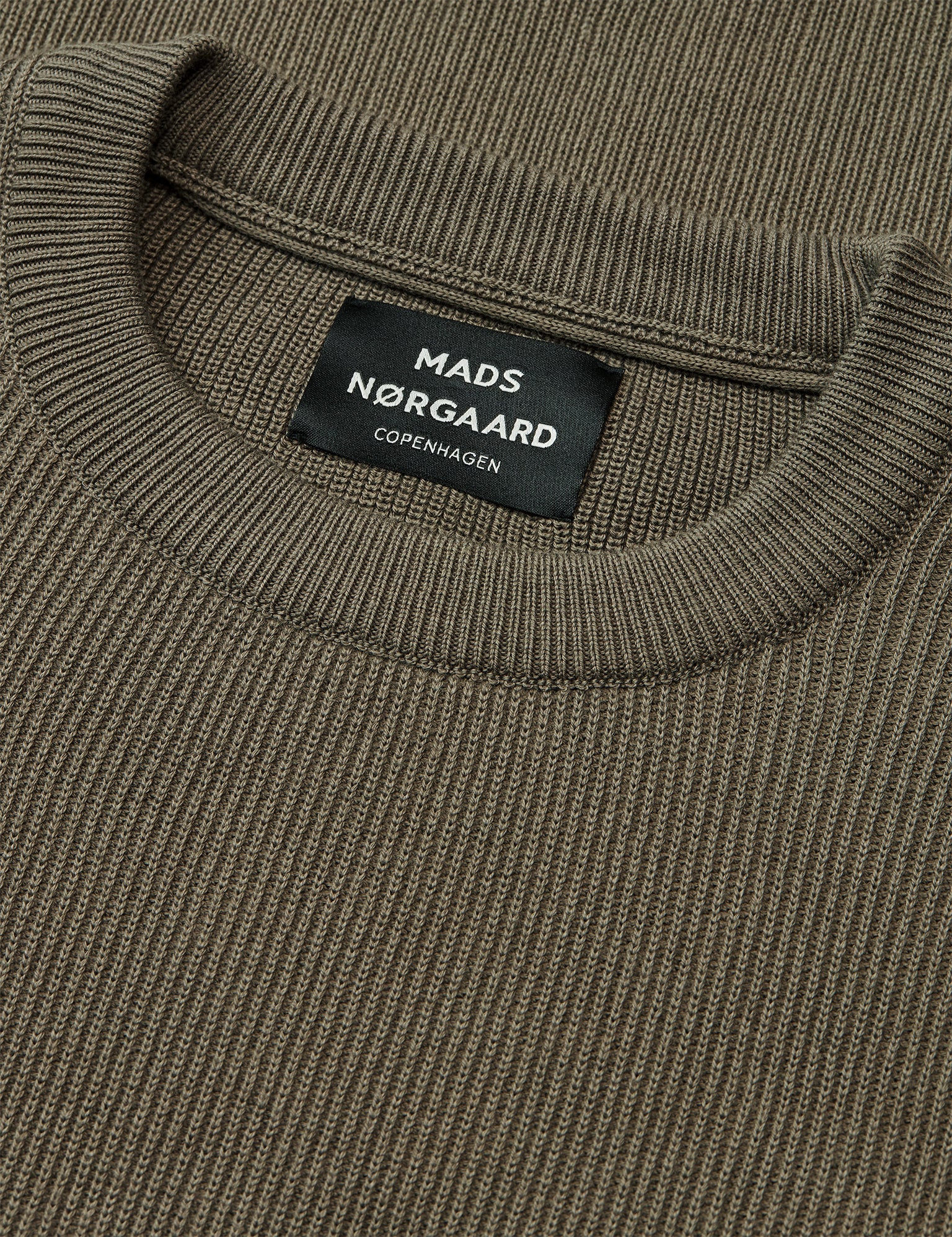 Our Tight Cotton Emil knitted sweater is made of cotton. The knit is simple and ribbed. The fit is regular.