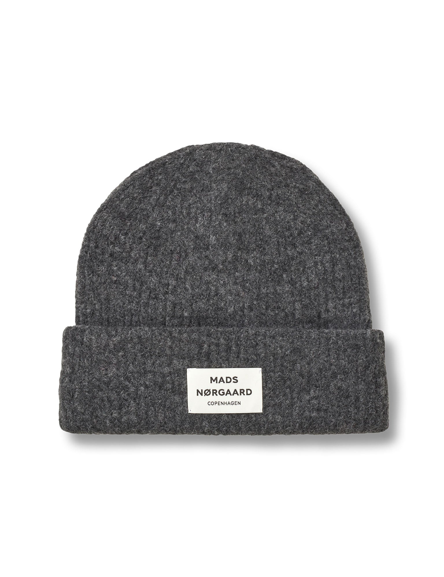 Soft, rib-knit beanie with wide double rib and sewn-on logo label.