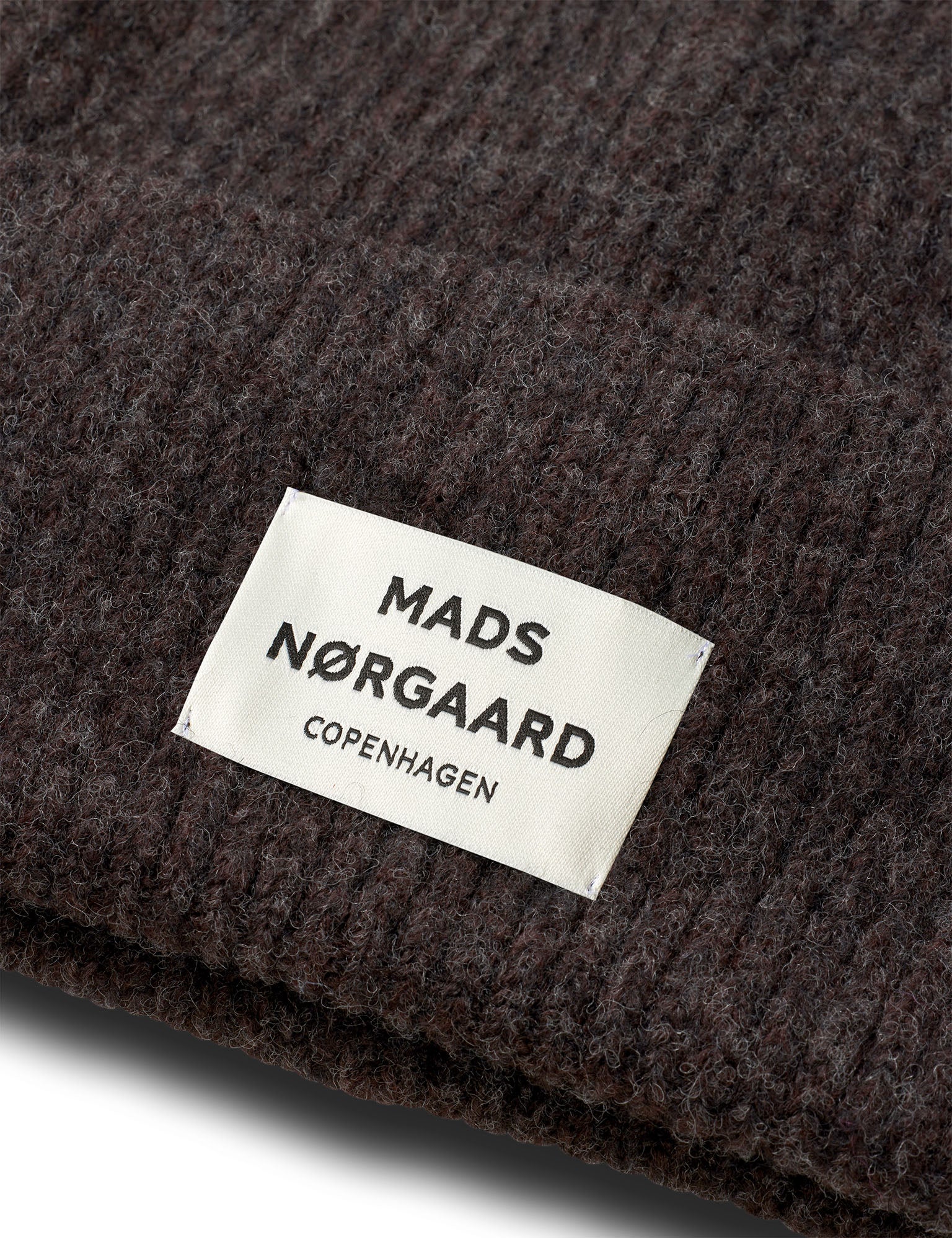 Soft, rib-knit beanie with wide double rib and sewn-on logo label.