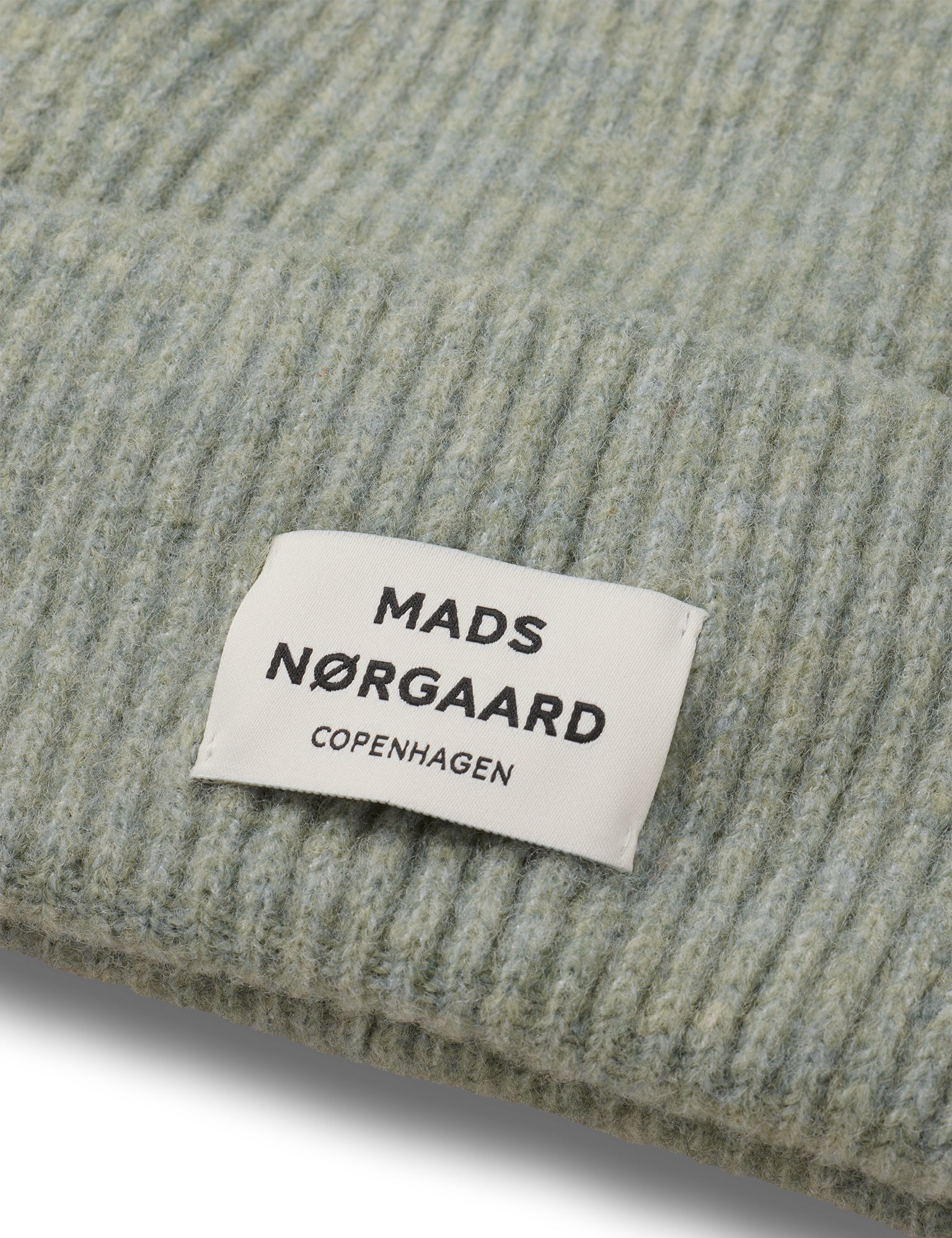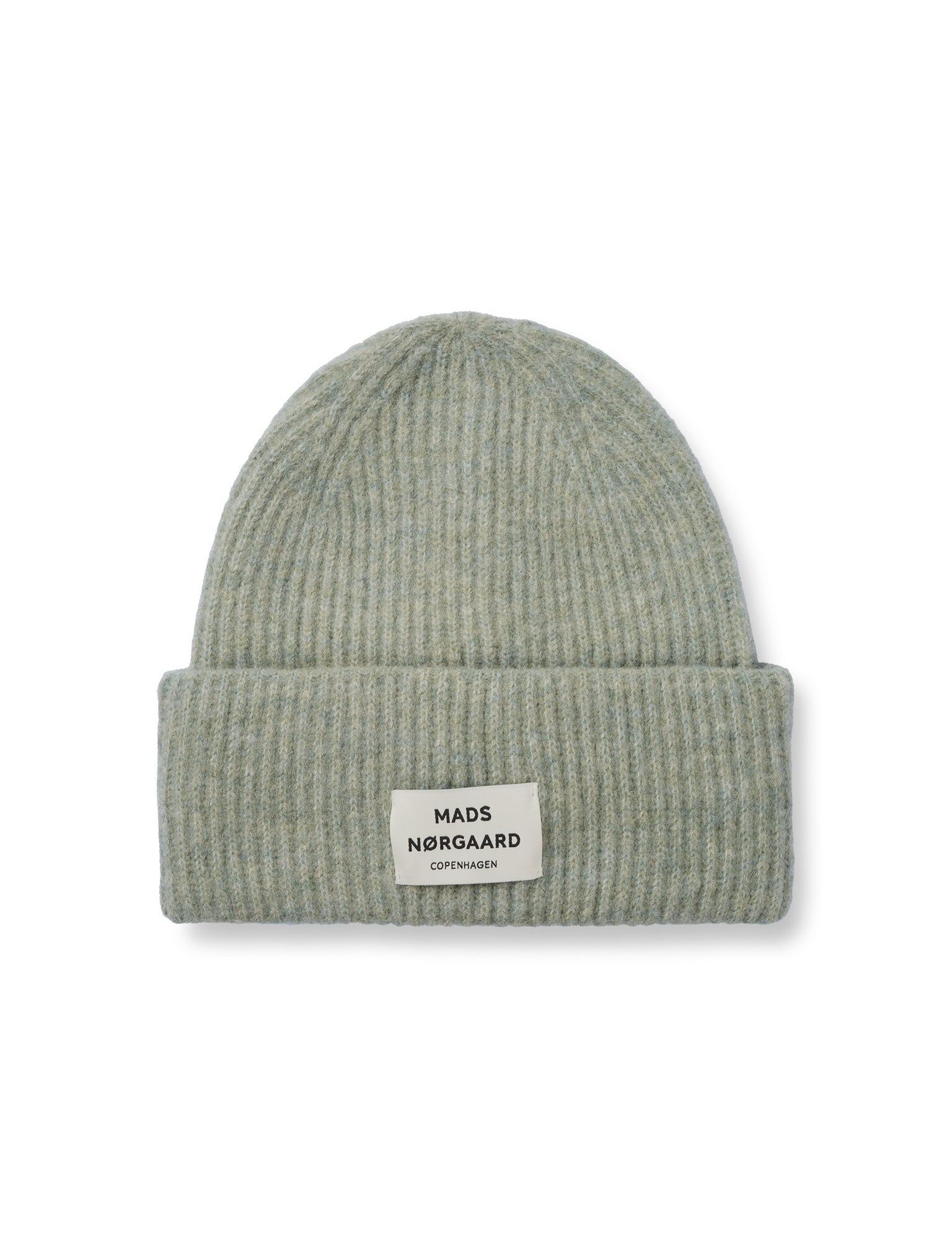 Soft, rib-knit beanie with wide double rib and sewn-on logo label.