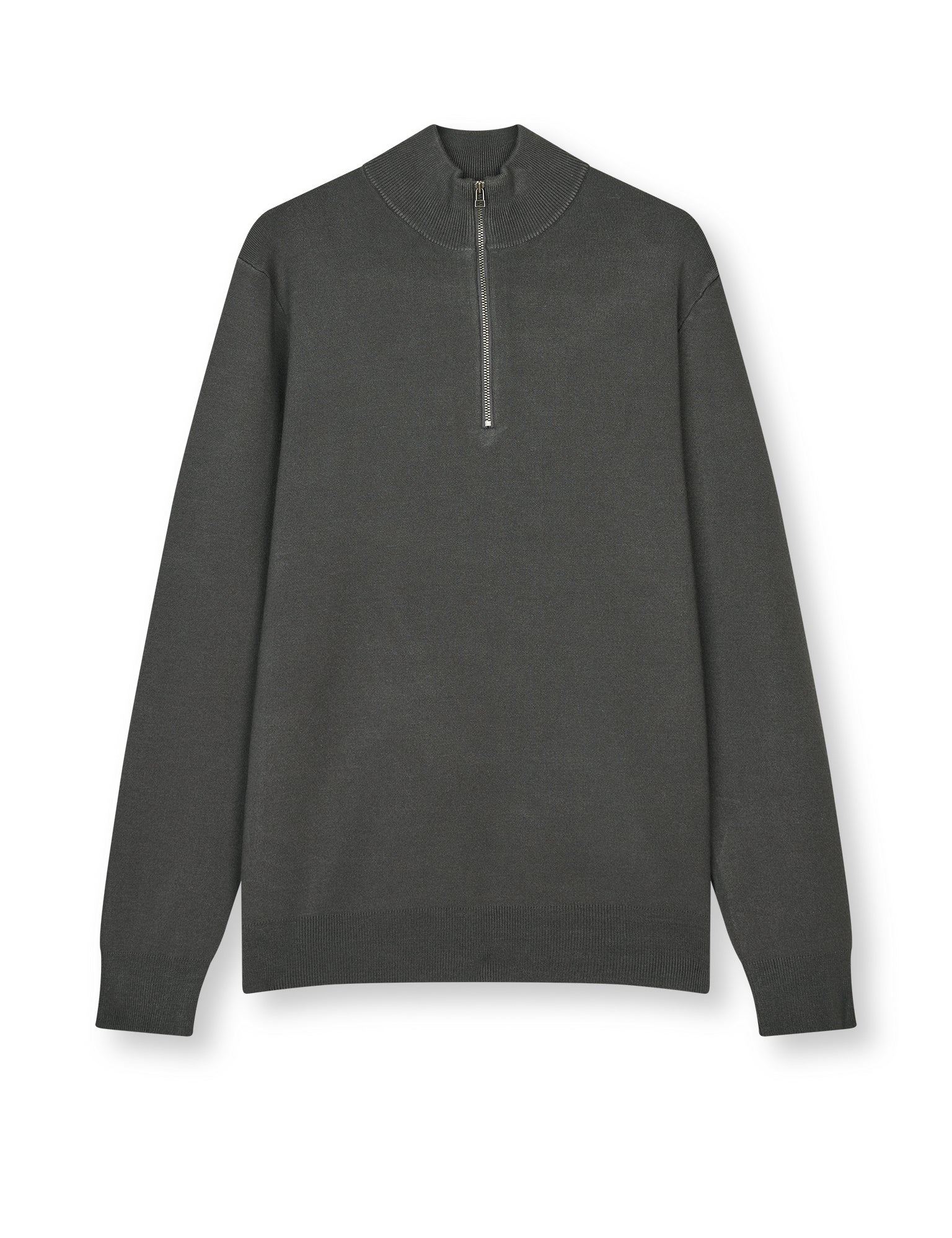 Smooth and simple high-neck knitted jumper with a zip to mid-chest and rib-knit trim.