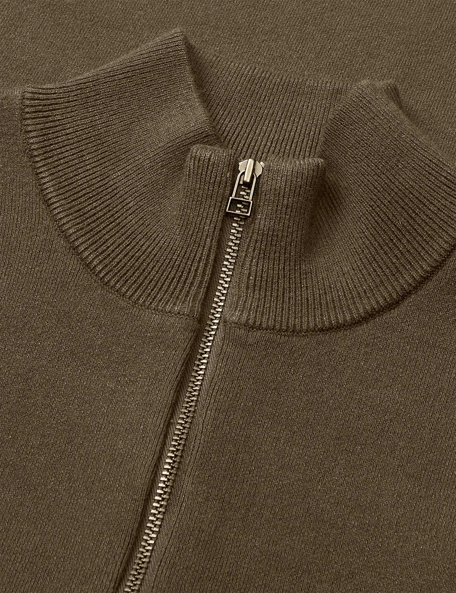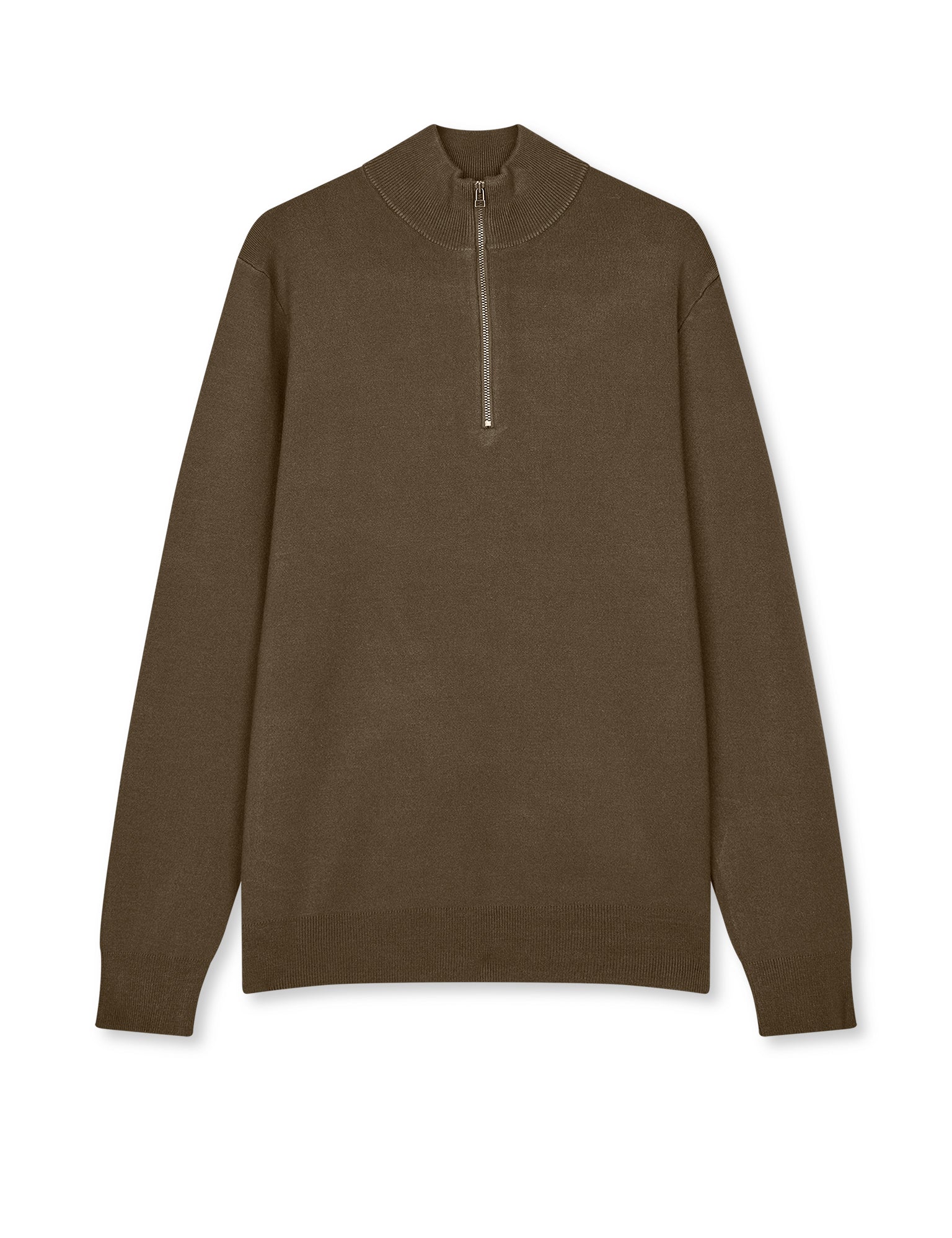 Smooth and simple high-neck knitted jumper with a zip to mid-chest and rib-knit trim.