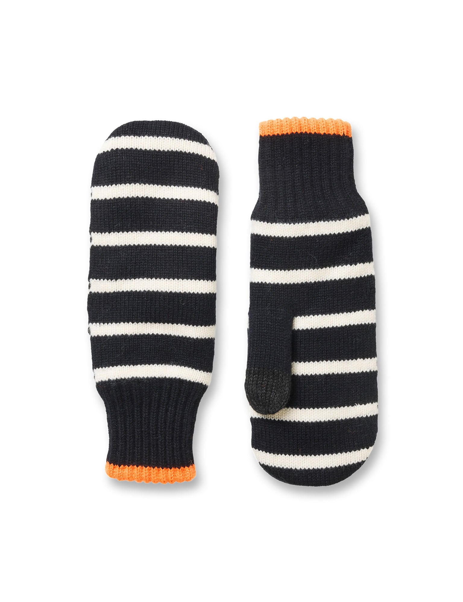 Soft, stockinette-knit mittens with rib knit, thin stripes and sewn-on logo label.