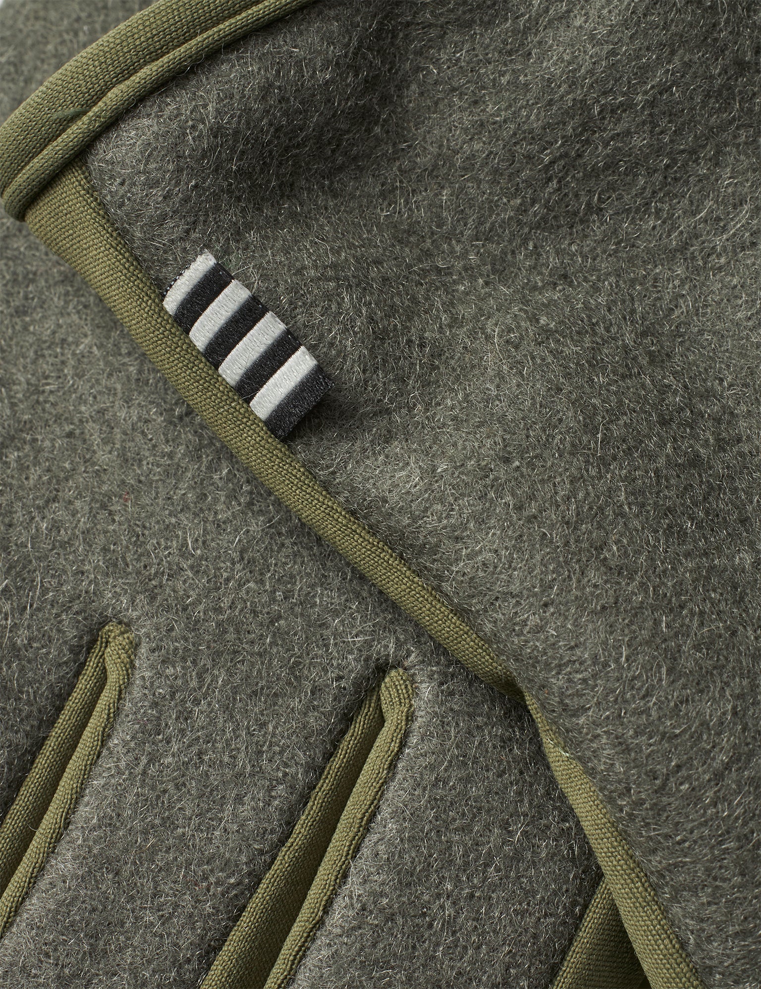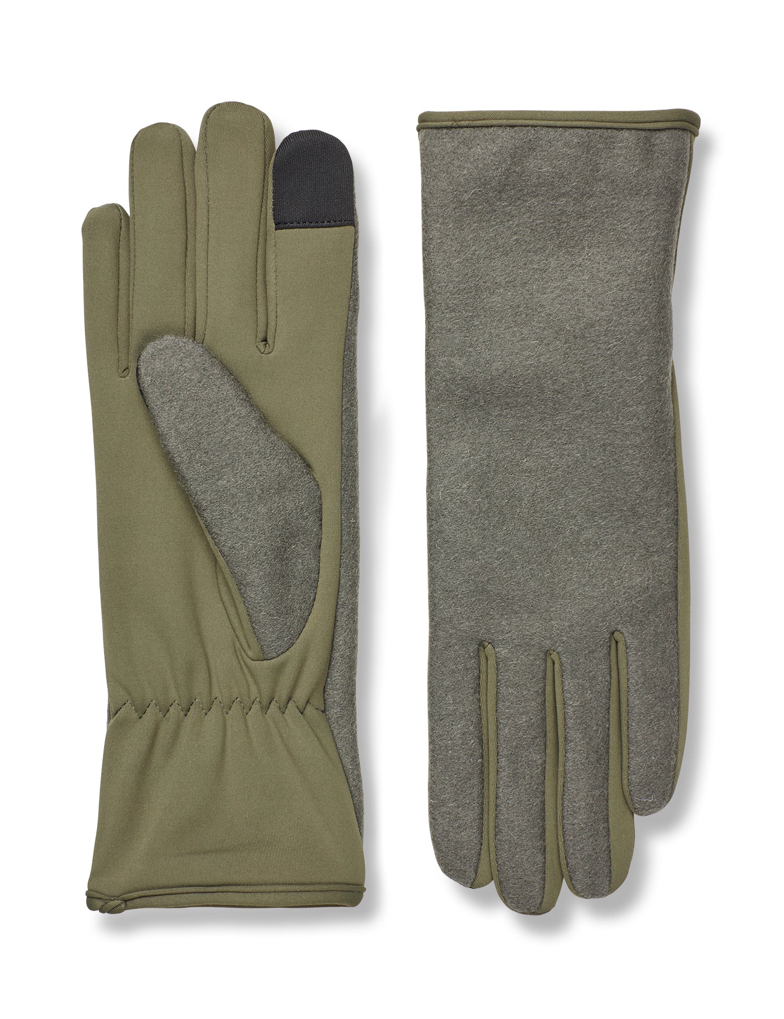 Gloves with felted wool on the back and soft, flexible fabric on the palm. And one finger with touch-screen functionality.