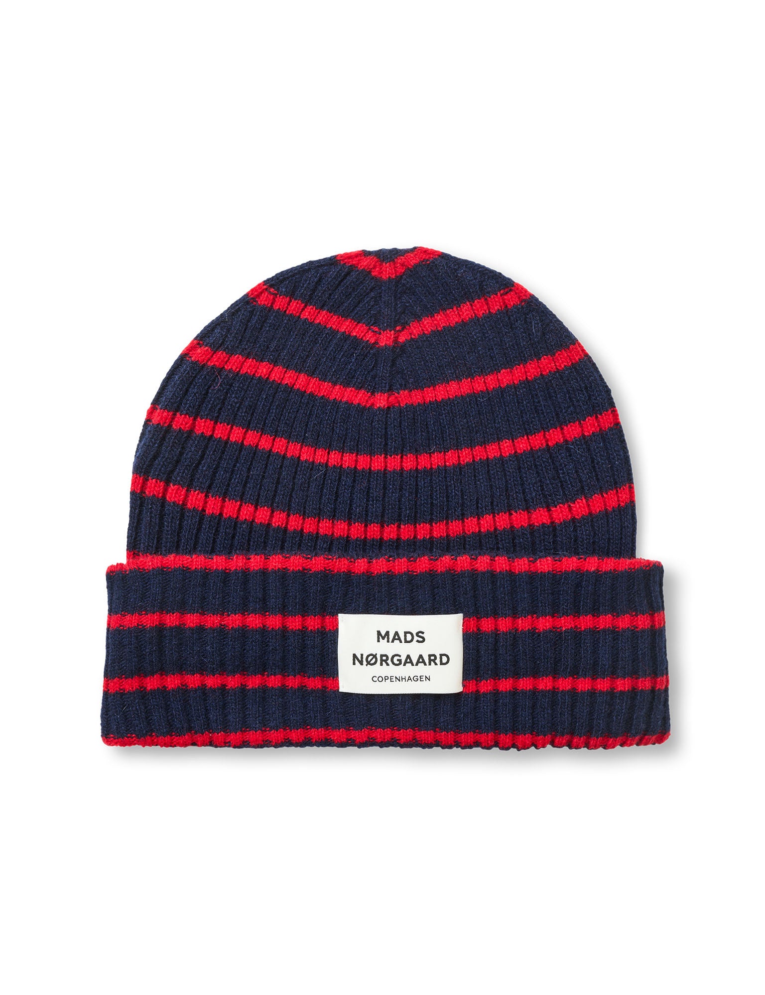 Soft, rib-knit beanie with wide double brim, thin stripes and sewn-on logo label.