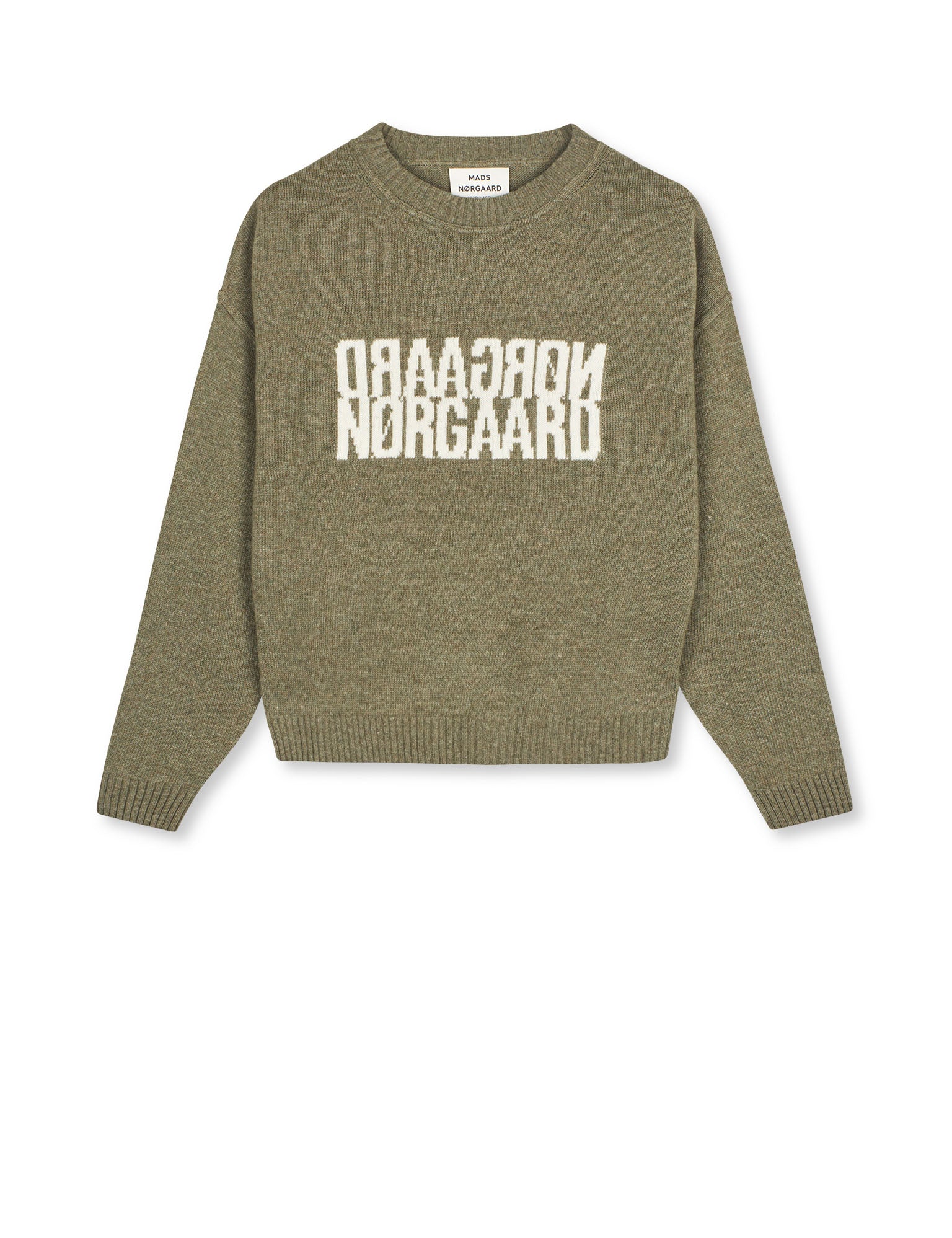 Soft, boxy and slightly oversized knitted jumper with a large, partially mirrored knitted logo.
